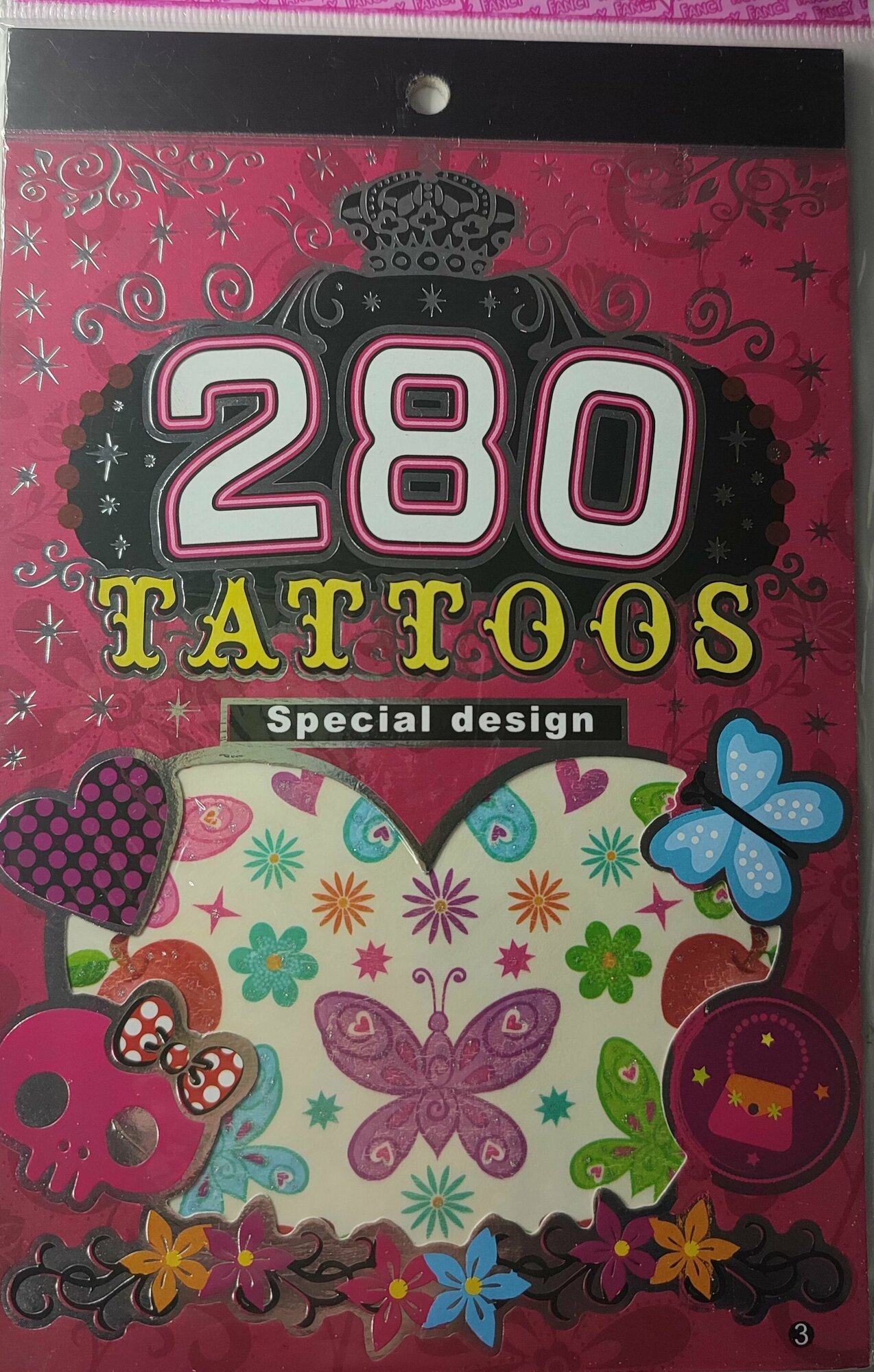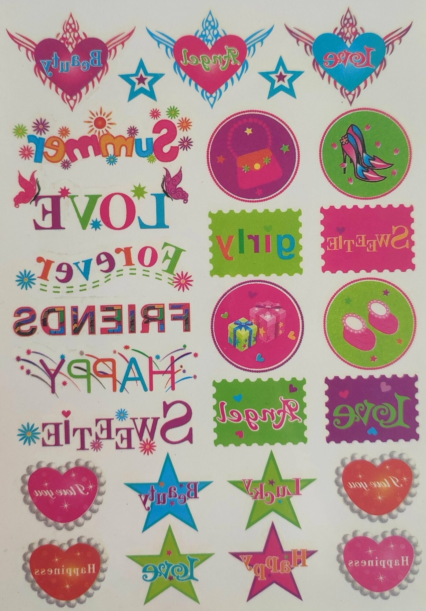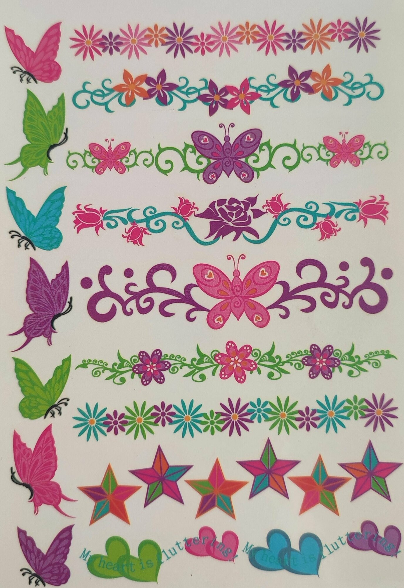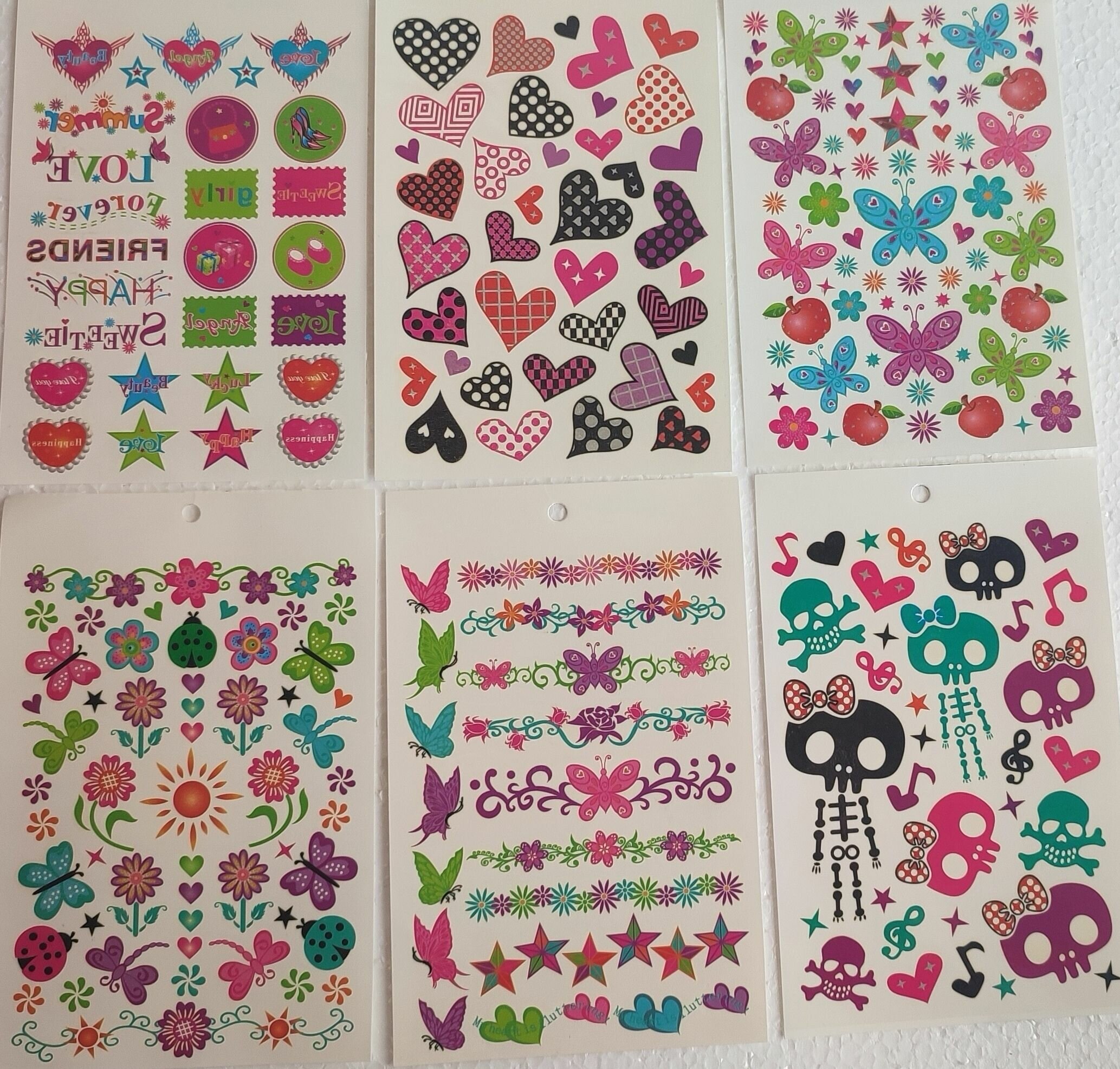 Купить Разноцветные временные татуировки: сердечки, цветочки, бабочки (280 наклеек)