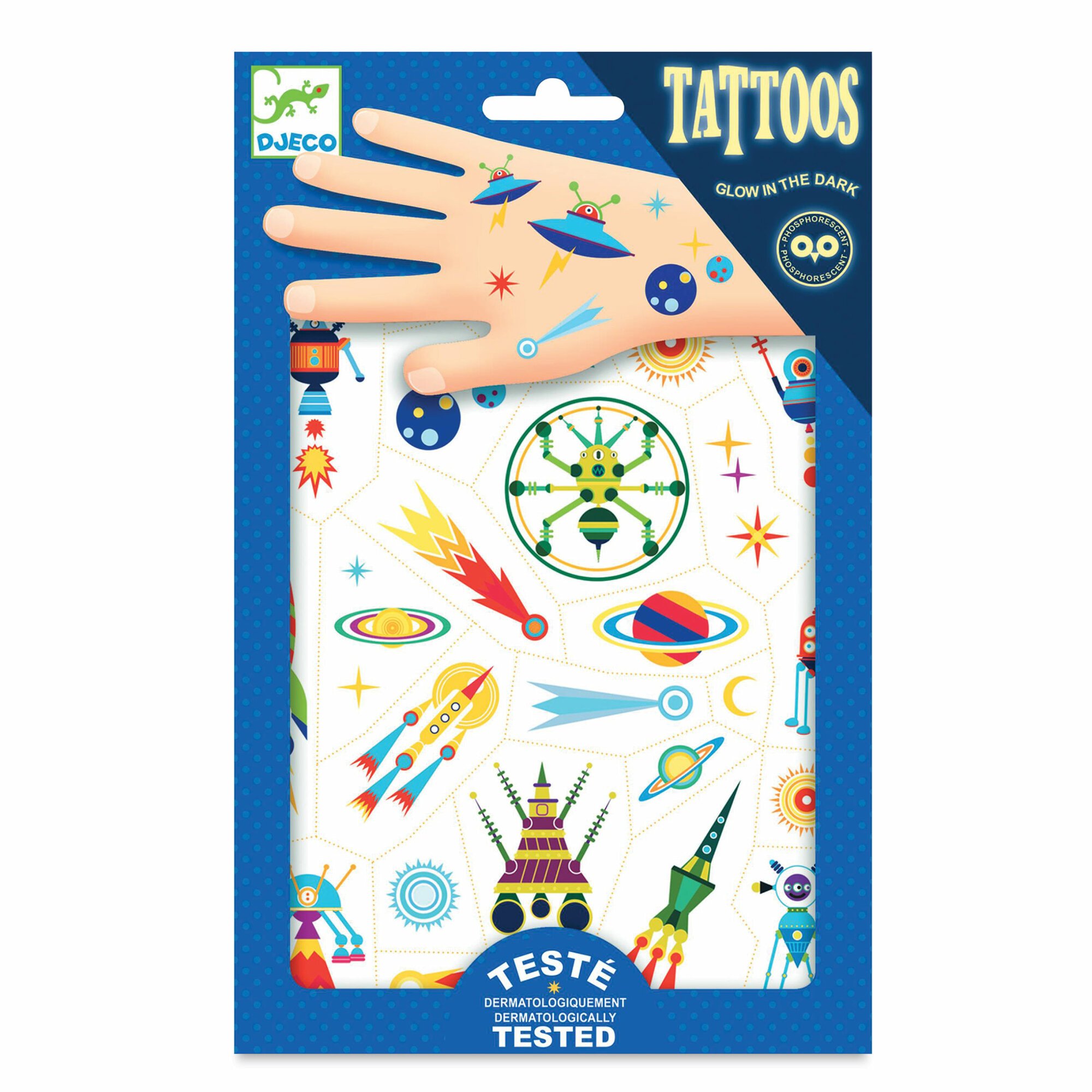 Купить Татуировки для детей Djeco "Космос" светящиеся, 2 листа, 09590