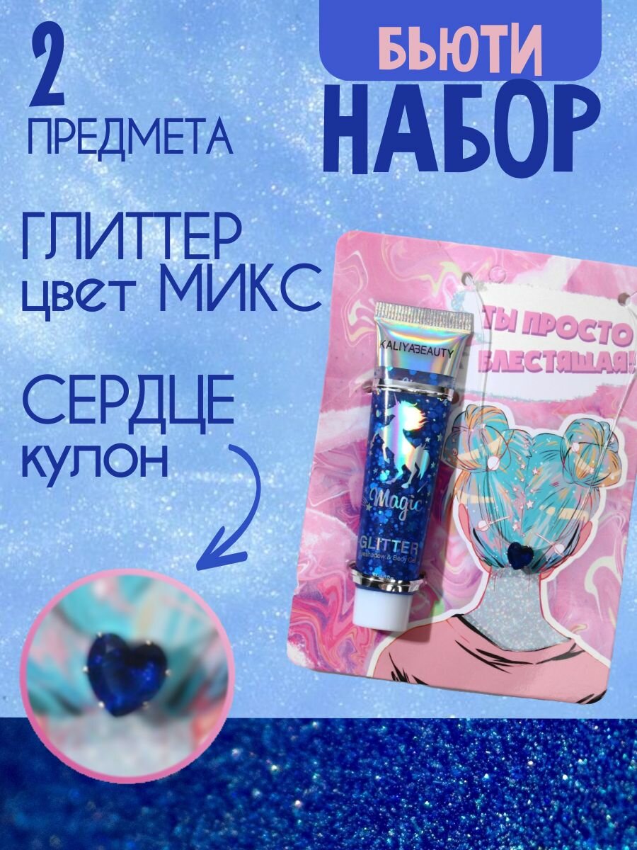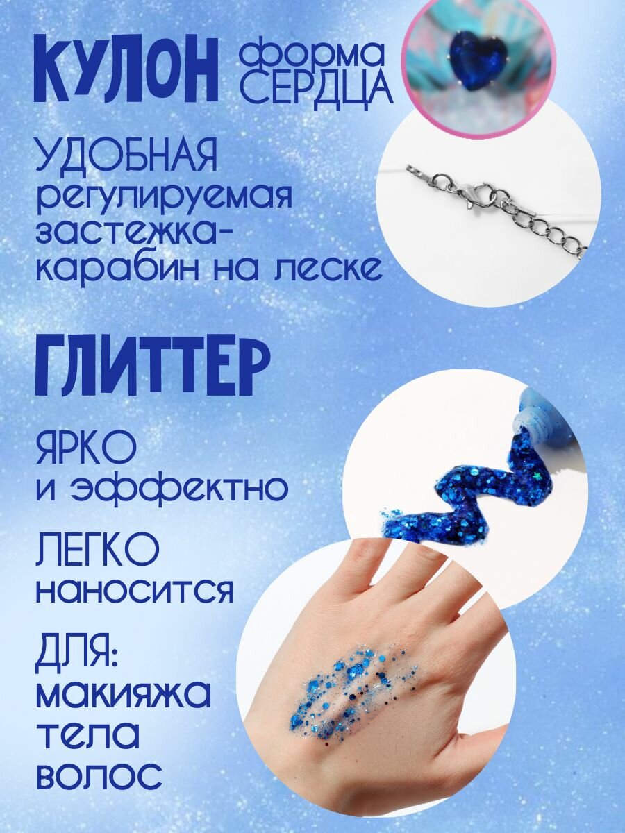Глиттер синий для тела и волос набор с кулоном интересное: