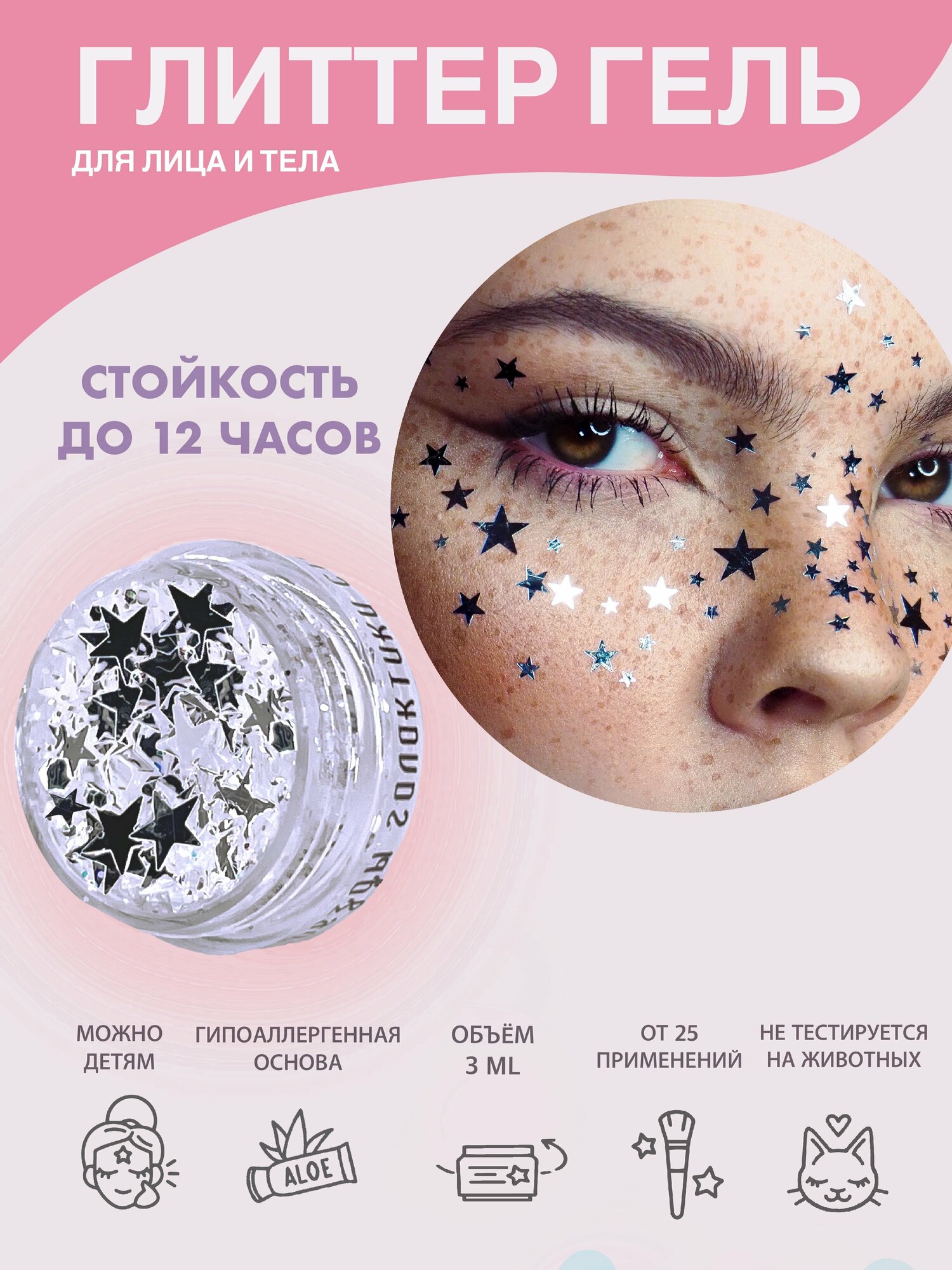 Queridos Glitters ГлиттерГель. Блёстки для лица и тела. Цвет "Звезды Моя прелесть" 3 мл.