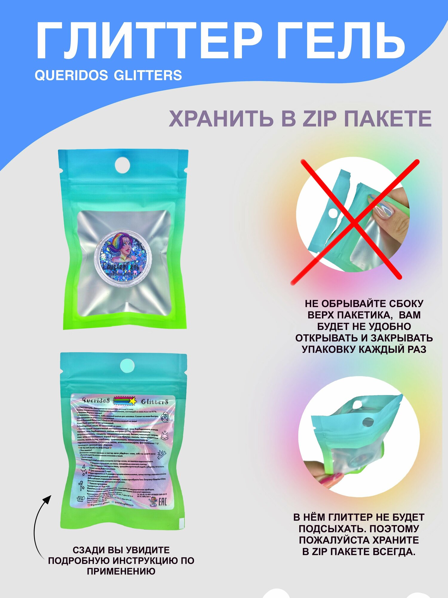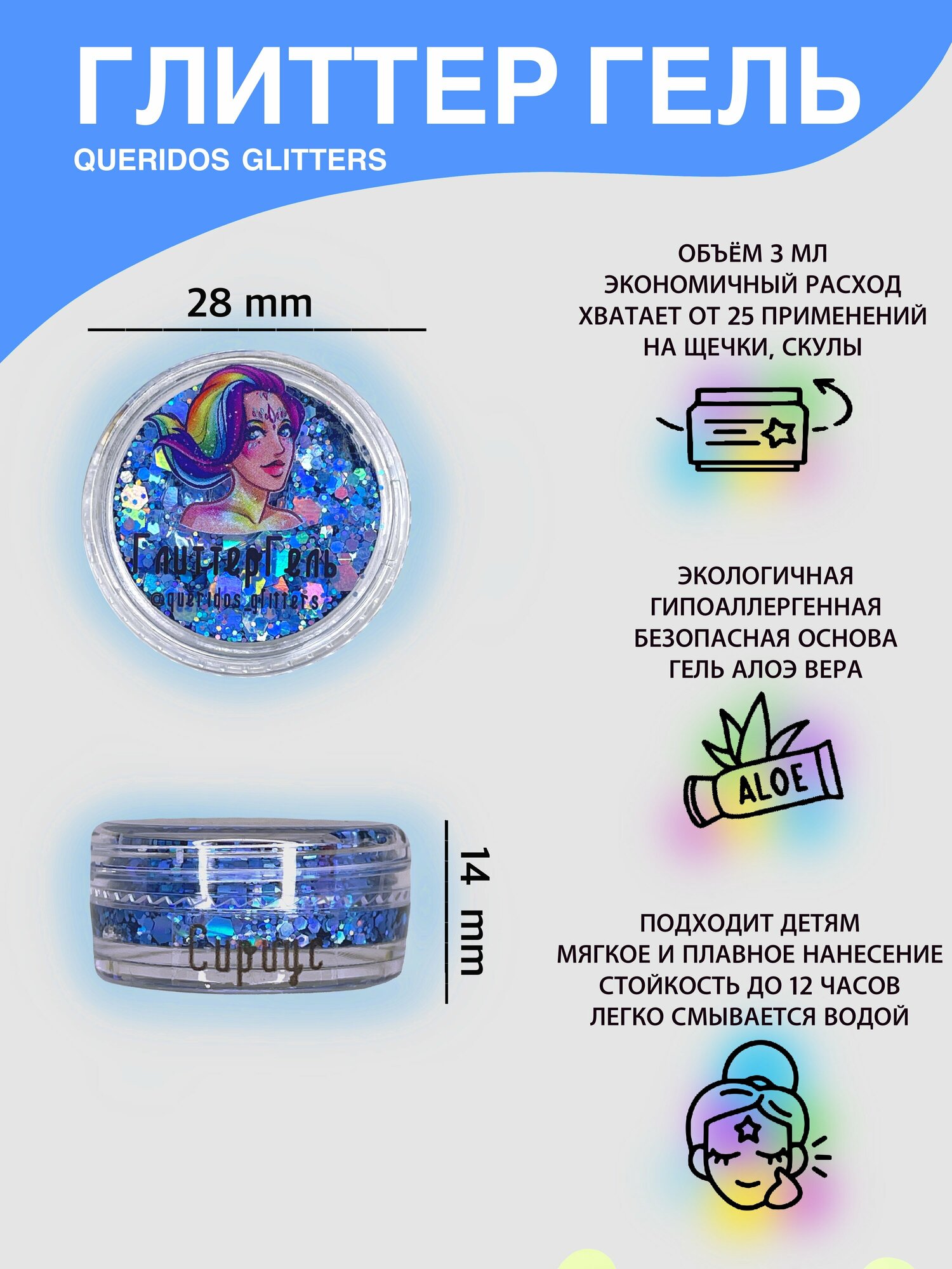 Queridos Glitters ГлиттерГель. Блёстки для лица и тела. Цвет "Ариэль" 3 мл.