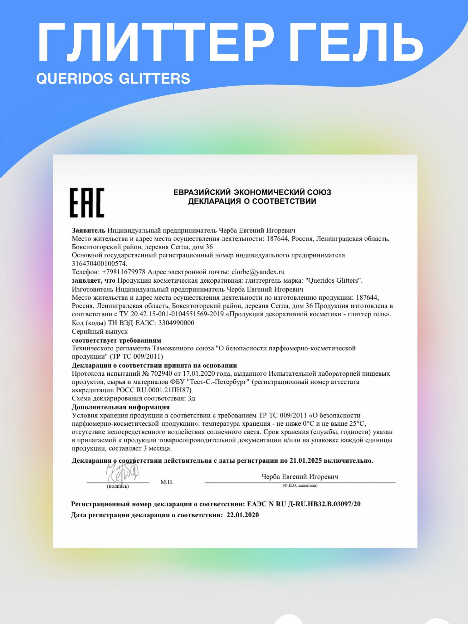 Queridos Glitters ГлиттерГель. Блёстки для лица и тела. Цвет "Эрагон" 3 мл.