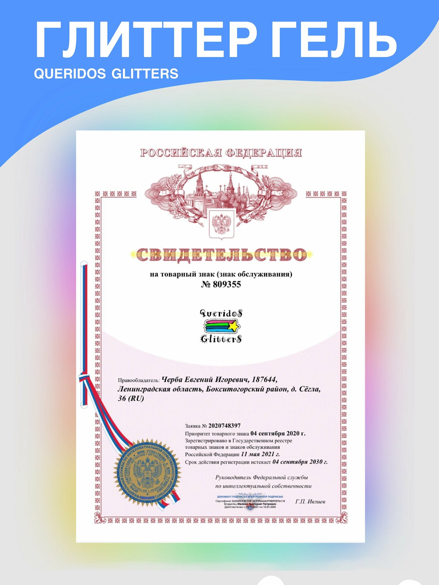 Queridos Glitters ГлиттерГель. Блёстки для лица и тела. Цвет "Крестраж" 3 мл.