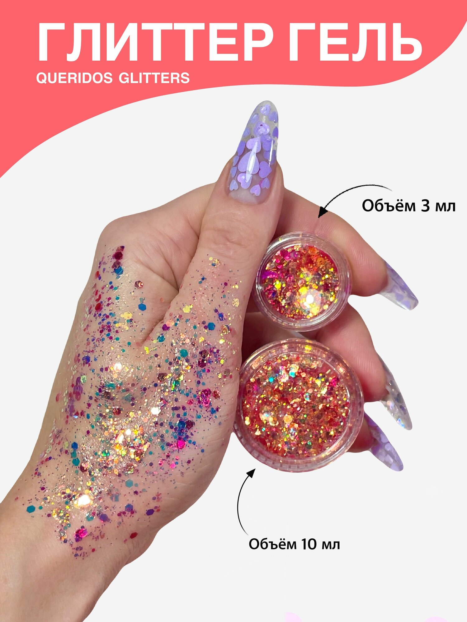Queridos Glitters ГлиттерГель. Блёстки для лица и тела. Цвет "Нирвана" 3 мл.