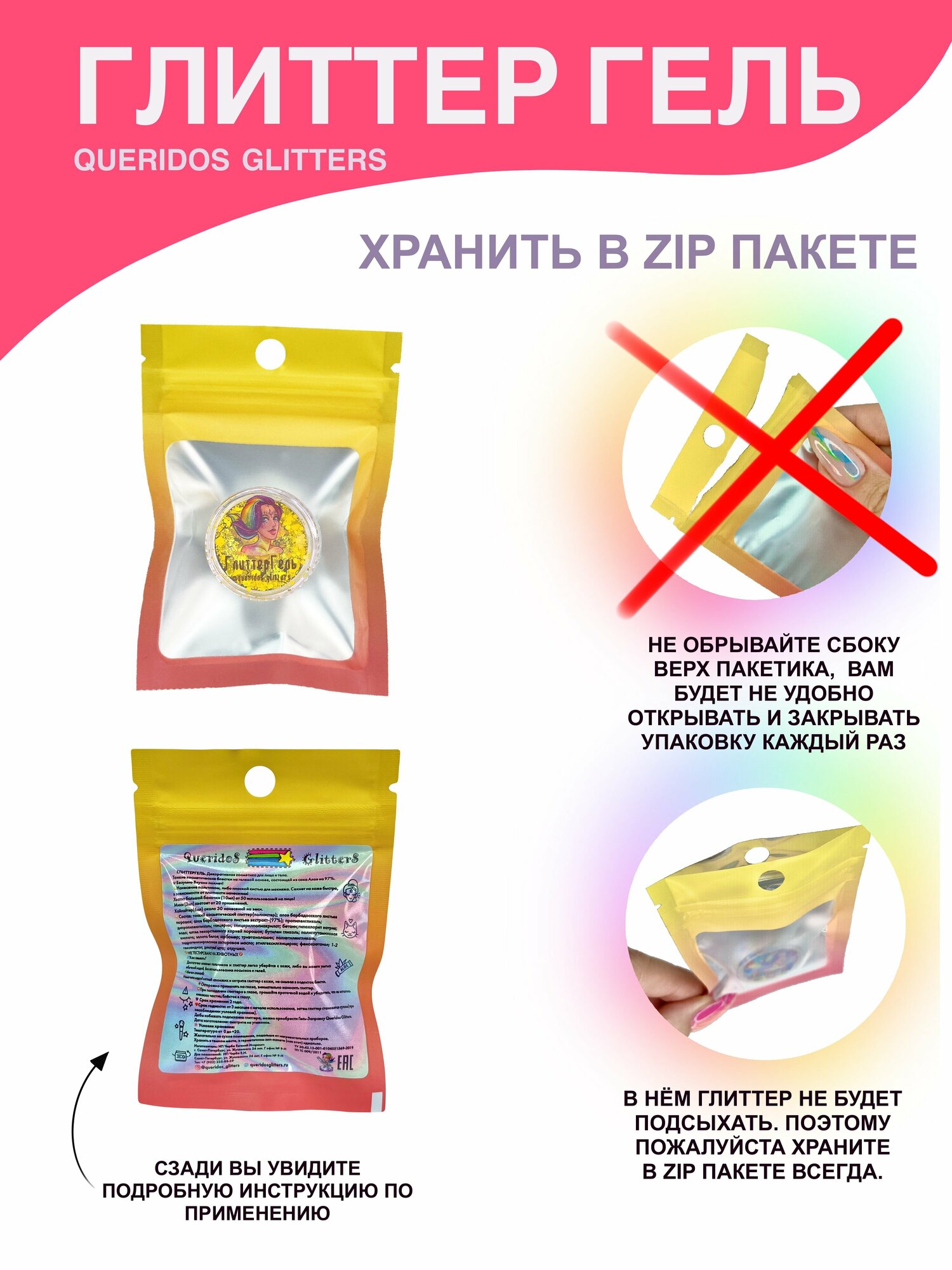 Queridos Glitters ГлиттерГель. Блёстки для лица и тела. Цвет "Идиллия" 3 мл.