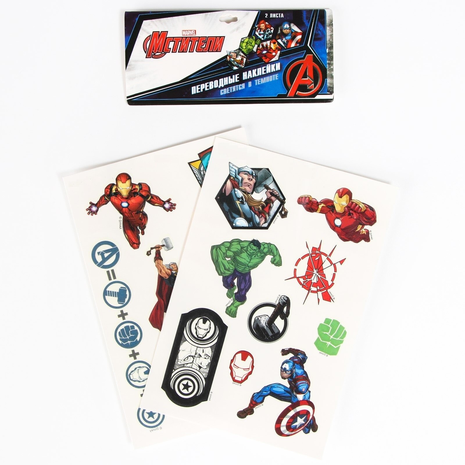 Переводные наклейки MARVEL "Мстители", светятся в темноте, для детей интересное: