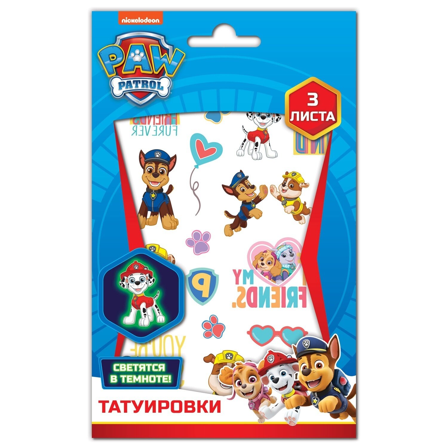 Купить Временные татуировки ND Play светящиеся, Щенячий патруль, 3 листа, дизайн 2 (301724)