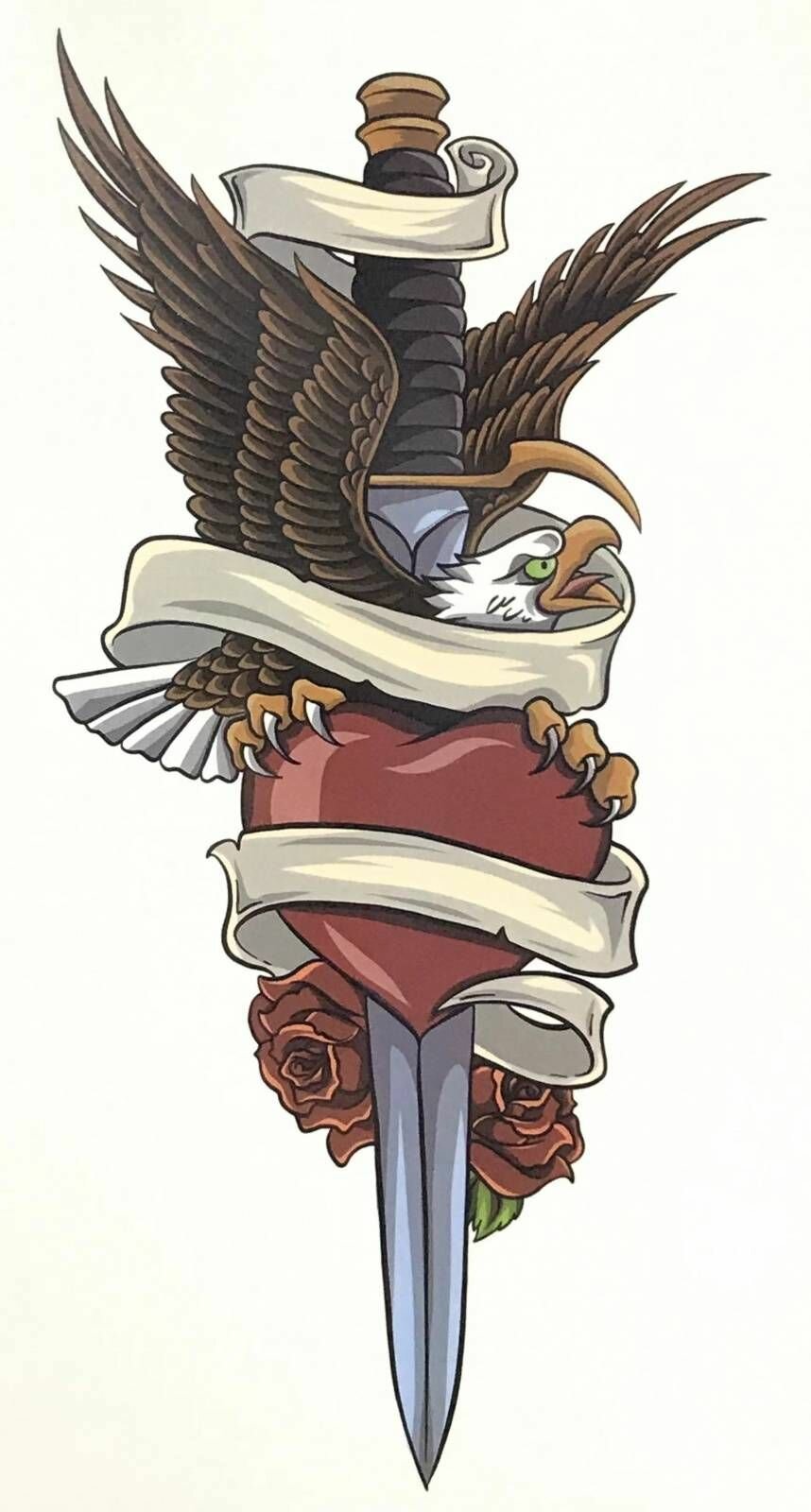 Купить Тату переводное - Орел и кинжал, 11.3х21 см, разноцветное, 1 шт