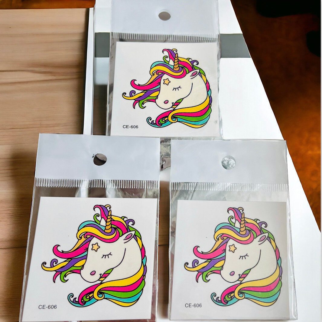 Купить Переводная татуировка "Единорог" цветная, размер 6х6 см набор 3 татуировки