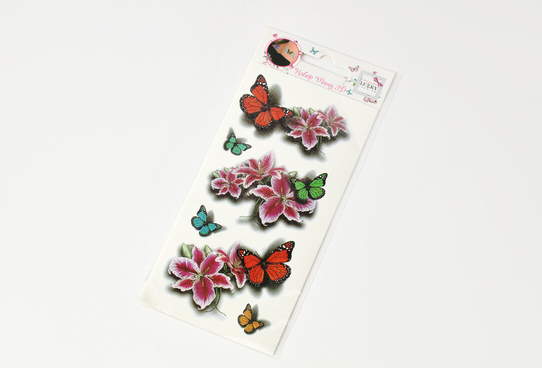 Набор татуировок LUKKY FASHION 3D, бабочки, цветы, 9х18см, для девочек интересное: