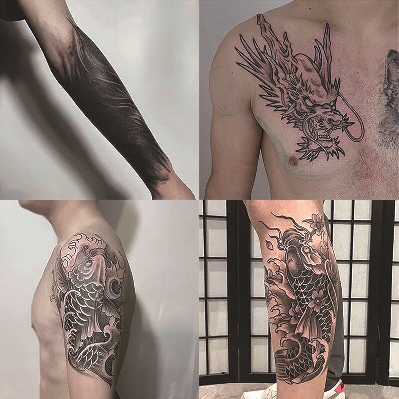 Тату-рукав на основе хны "Сакура", 23х15см, чёрно-белая, на 14 дней