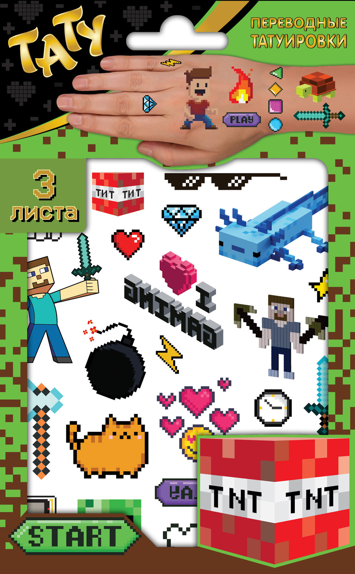 Купить Наклейки - татуировки "Пиксели", 3 листа ND Play