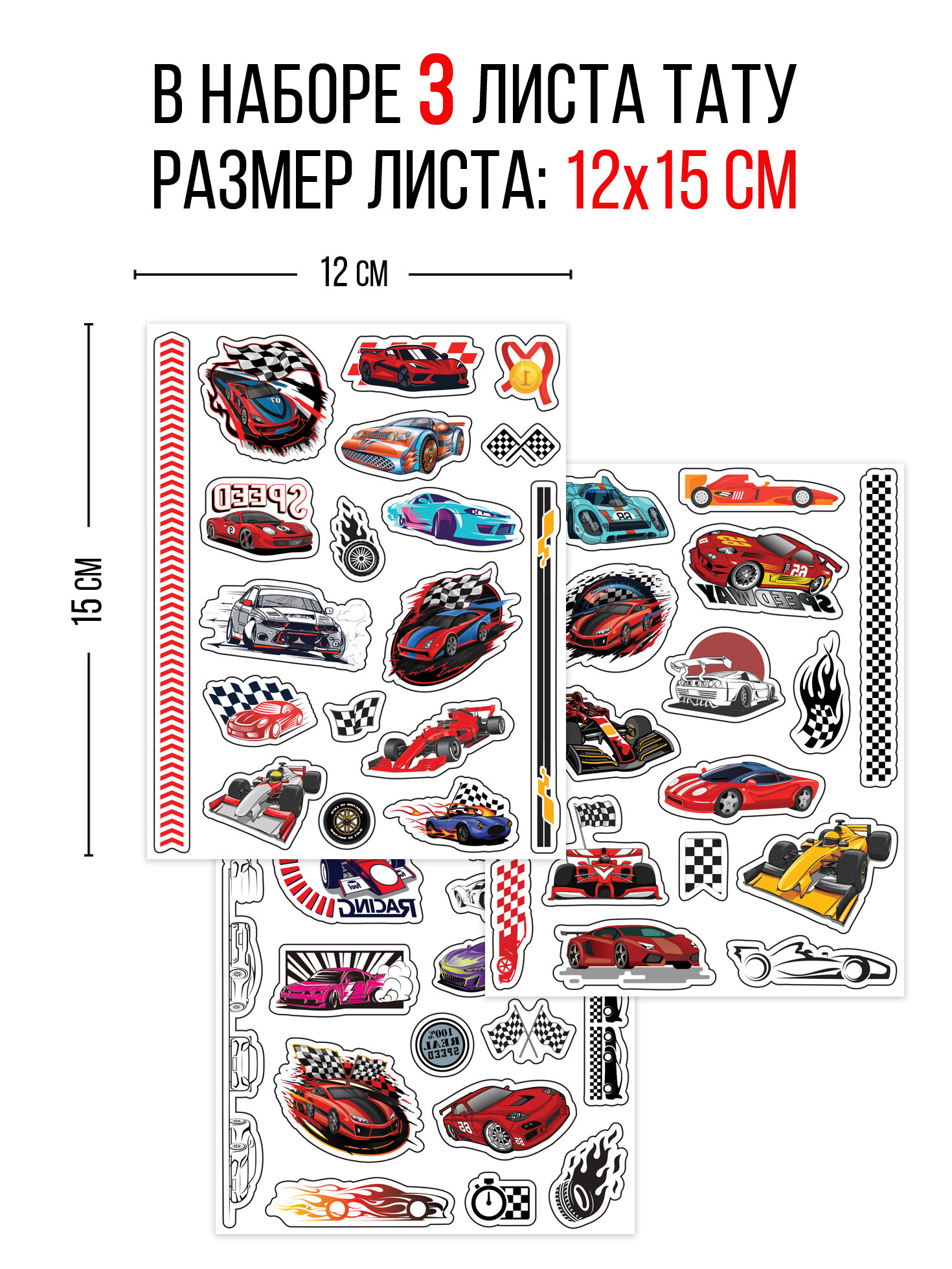 Купить Наклейки - татуировки "Гоночные машинки", 3 листа ND Play