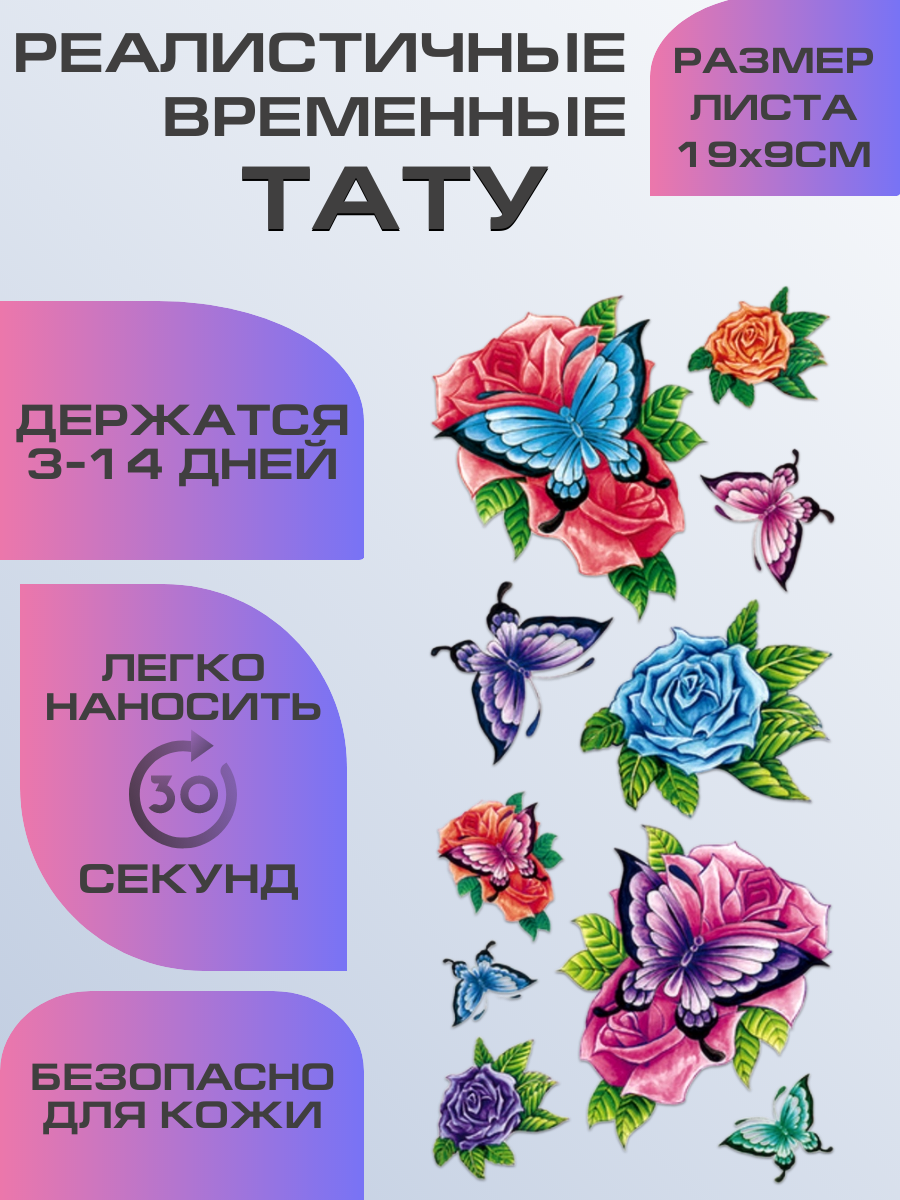 Тату переводные долговременные, временные тату бабочки
