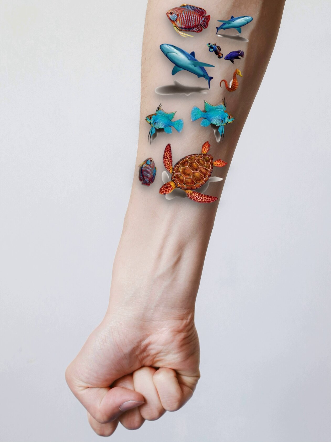 СохранитьТату переводные долговременные, временные рыбы интересное: