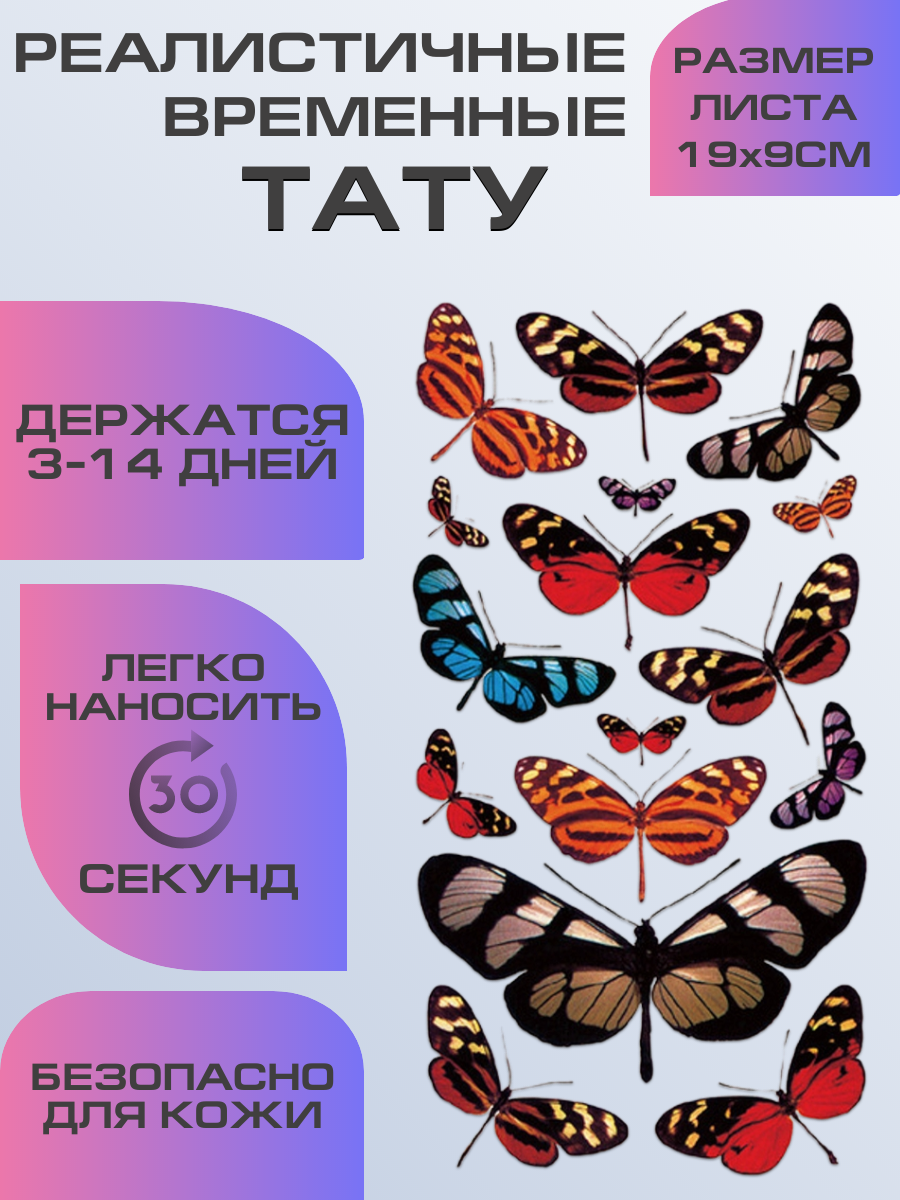 Тату переводные долговременные, временные тату бабочки
