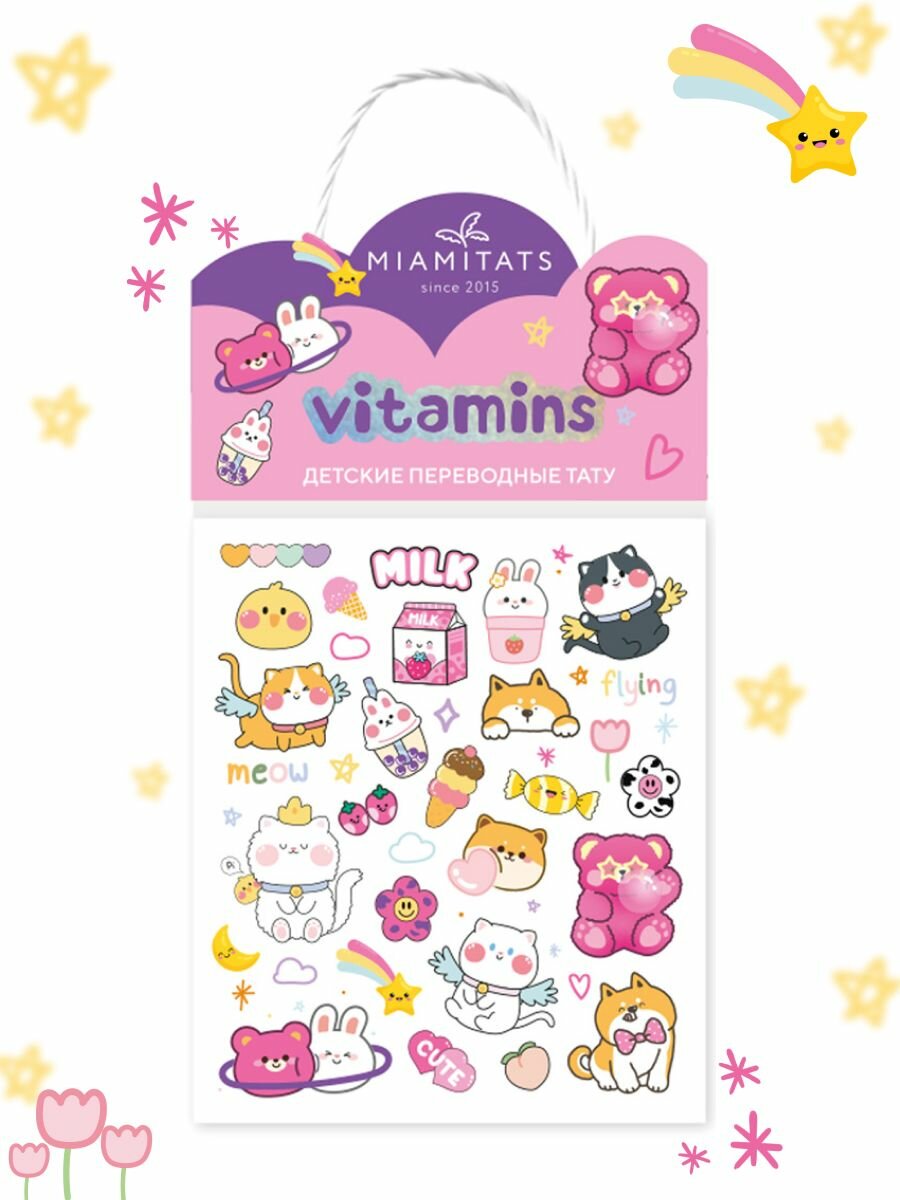 Купить MIAMITATS KIDS Детские переводные мини-тату Vitamins ( мишки, котики )