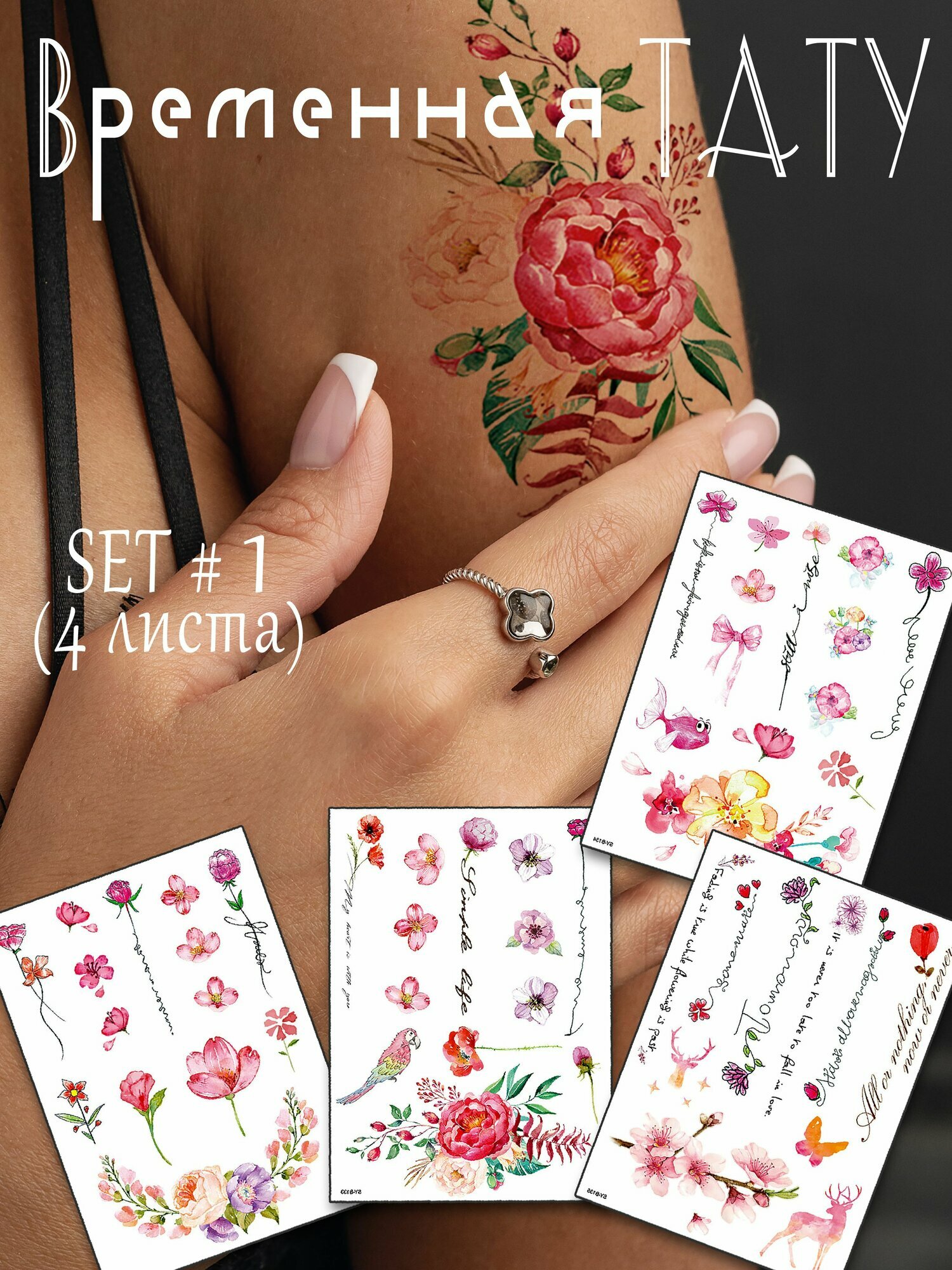 Купить Временная переводная тату (НЕ чернила) Набор - 4 листа в комплекте. Размер 210х150мм