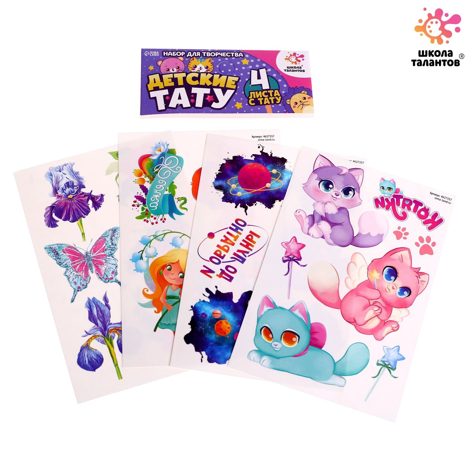 Купить Тату переводные детские, цвет МИКС, 4 листа, набор, Школа талантов