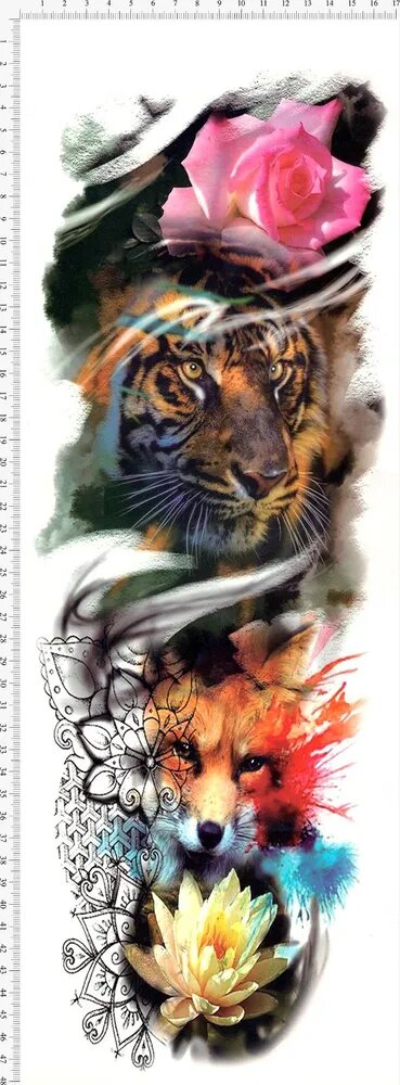 Переводная татуировка Сима Ленд "Тигр и Лиса", 48.5x17 см, цветная интересное: