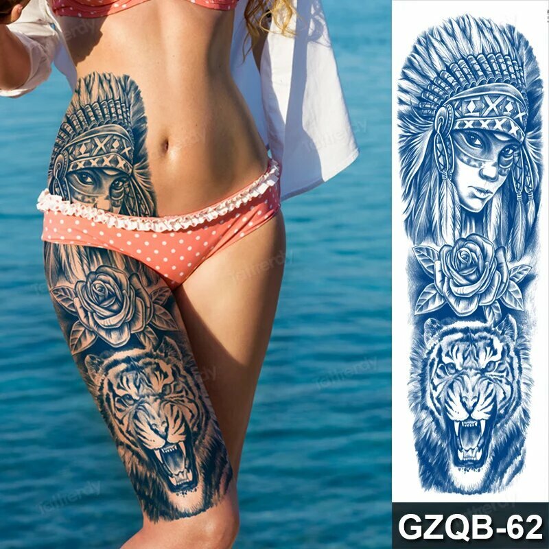 СохранитьВременные татуировки Tattrendy, полный рукав, волк, череп, роза, GZQB62 интересное: