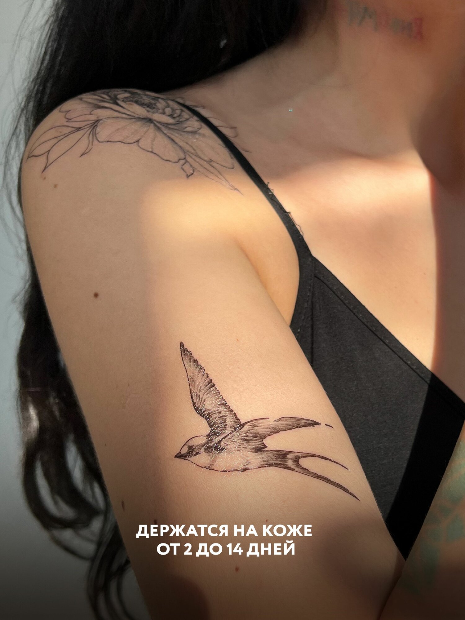 Татуировка на тело цветная "Птица в розах" 36,5х22 см, 1 шт.