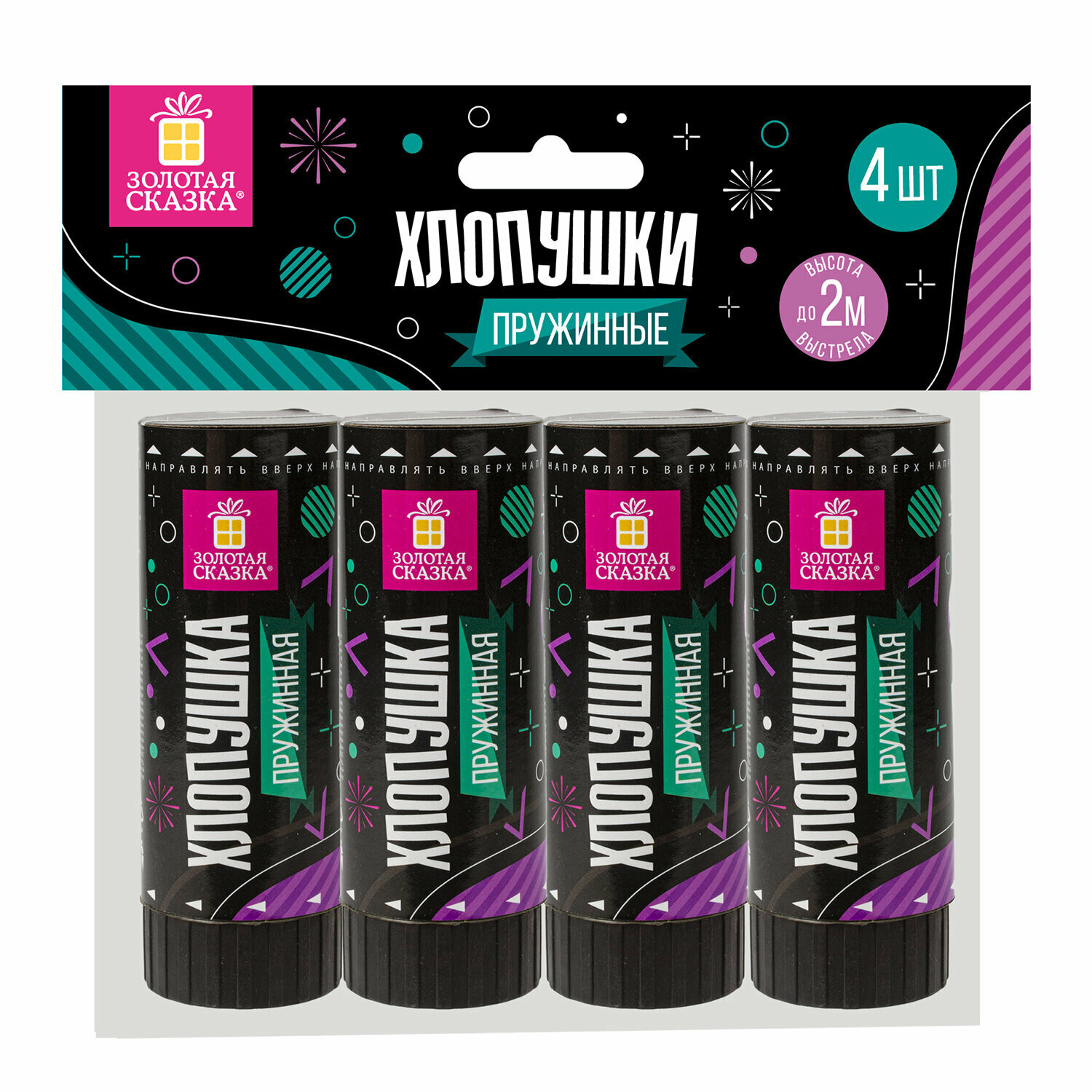Купить Хлопушка пружинная золотая сказка набор 4 шт, 11 см, фольга, серпантин/конфетти, ассорти, 591469