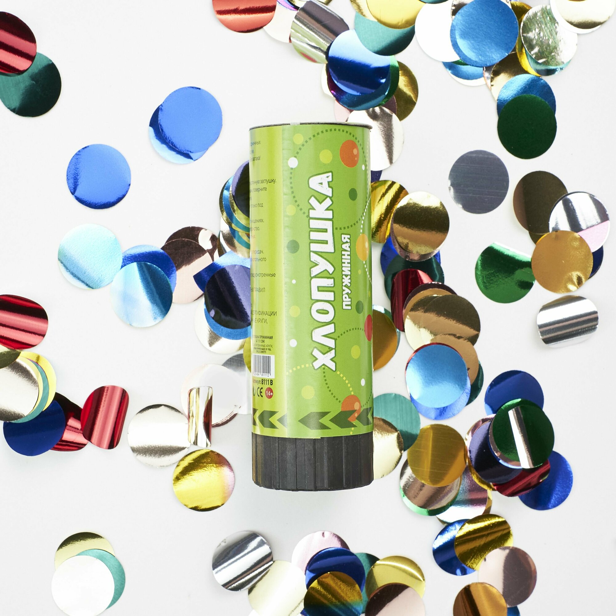 Купить Хлопушка пружинная (4/10 см), Круги фольга, Ассорти, 1 шт.
