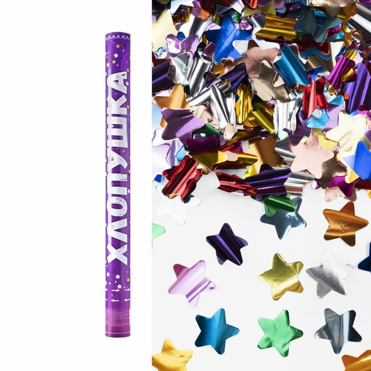 Купить Пневмохлопушка (12/30 см), Металлизированные звезды, Ассорти, 1 шт.