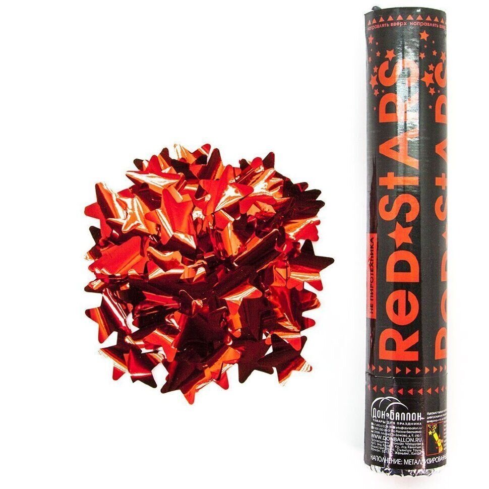 Купить Пневмохлопушка (12/30 см), Металлизированные звезды, Красный, 1 шт.