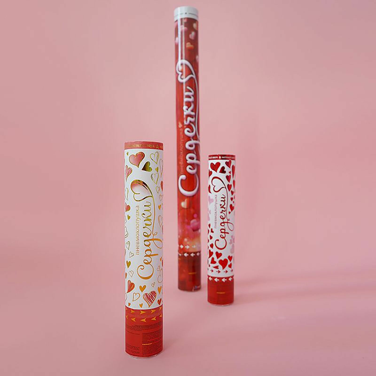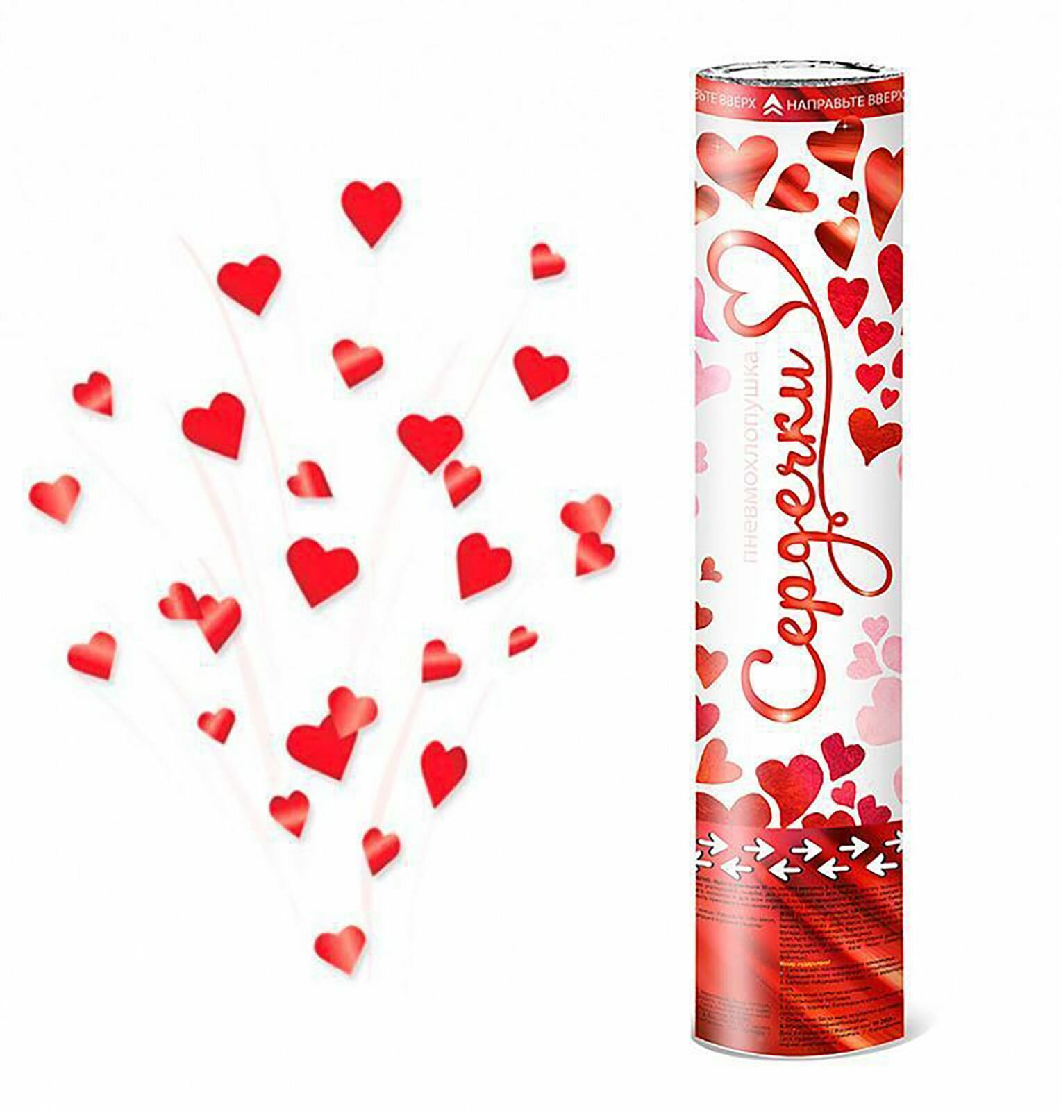 Пневмохлопушка Сердечки с красной печатью (тиснение) / 30 см / 1 шт. интересное: