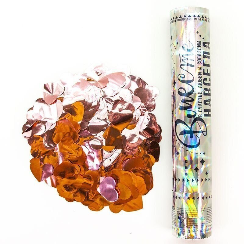 Купить Пневмохлопушка (12/30 см), Вместе Навсегда, Металлизированные сердца, Розовое Золото, Голография, 1