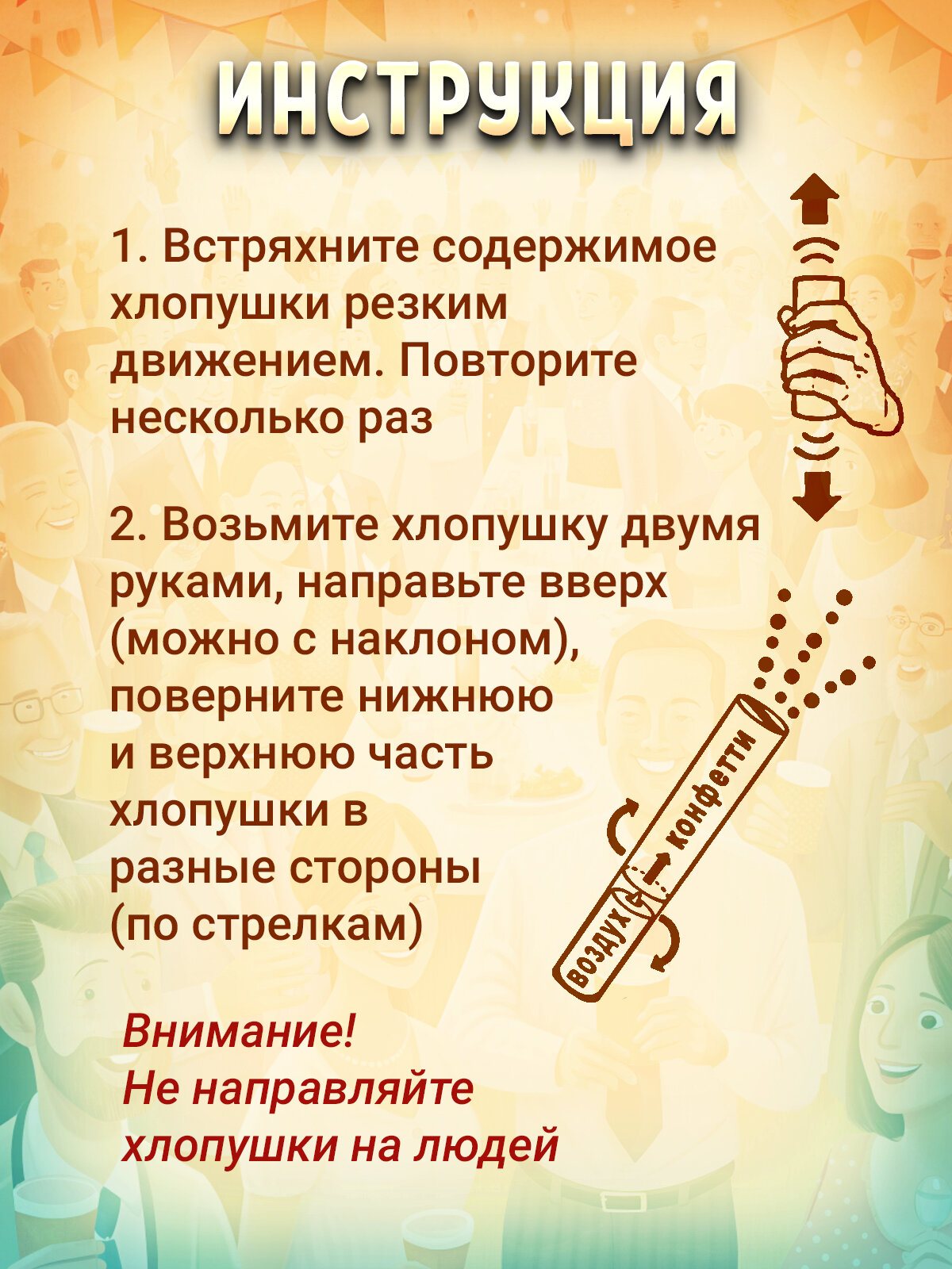 Пневматическая хлопушка на праздник Цветное конфетти и стикеры 30 см, в наборе 24 штуки