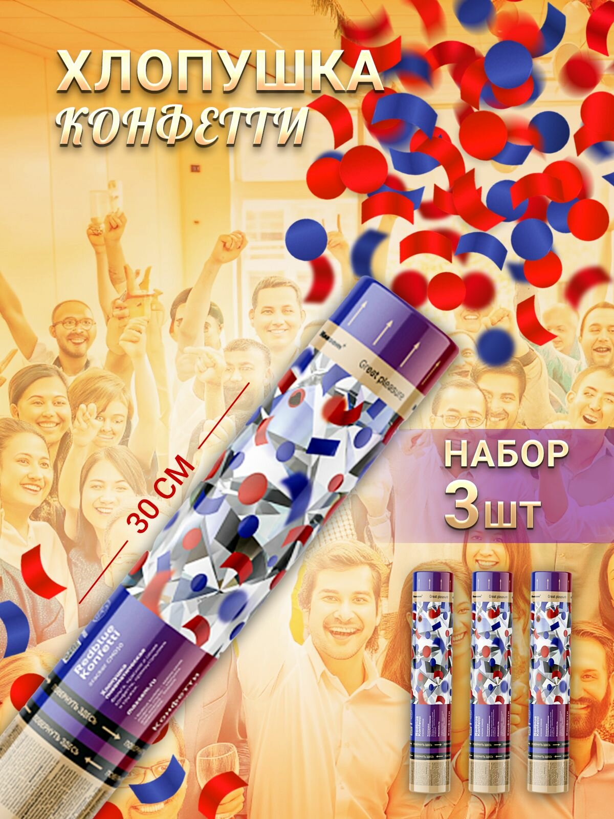 Пневматическая хлопушка на праздник разноцветное конфетти 30 см, в наборе 3 штуки