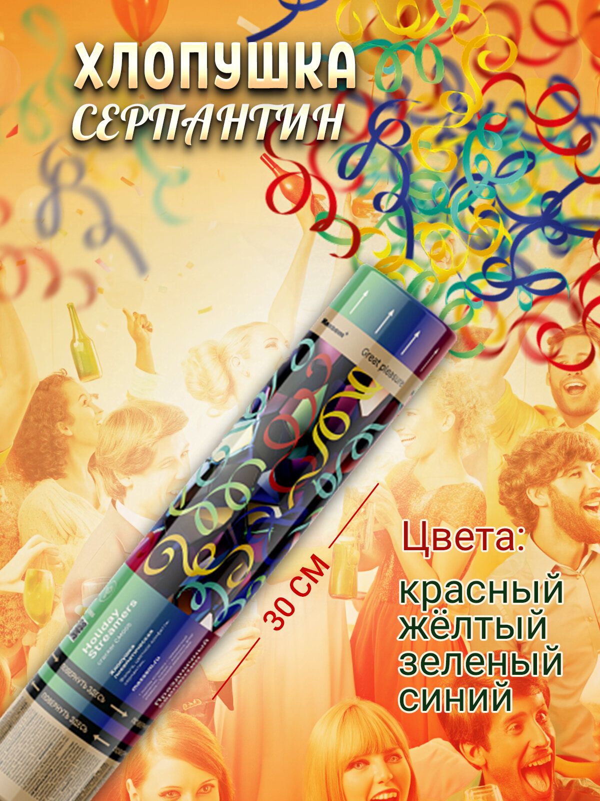 Пневматическая хлопушка на праздник Полоски Фольга, Цветной Серпантин 30 см, в наборе 6 штук