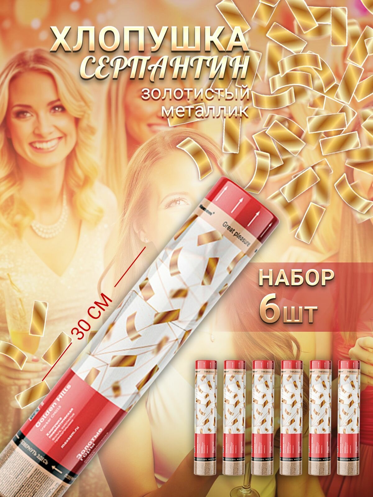 СохранитьПневматическая хлопушка на праздник Золотые полоски конфетти, 30 см, в наборе 6 штук интересное: