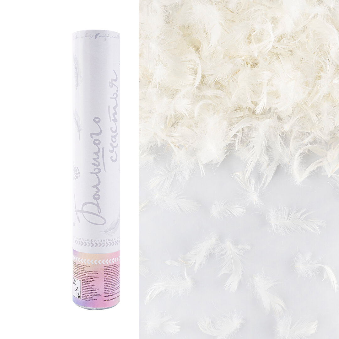 Пневмохлопушка (12/30 см), Большого Счастья, Перья, Белый, 1 интересное:
