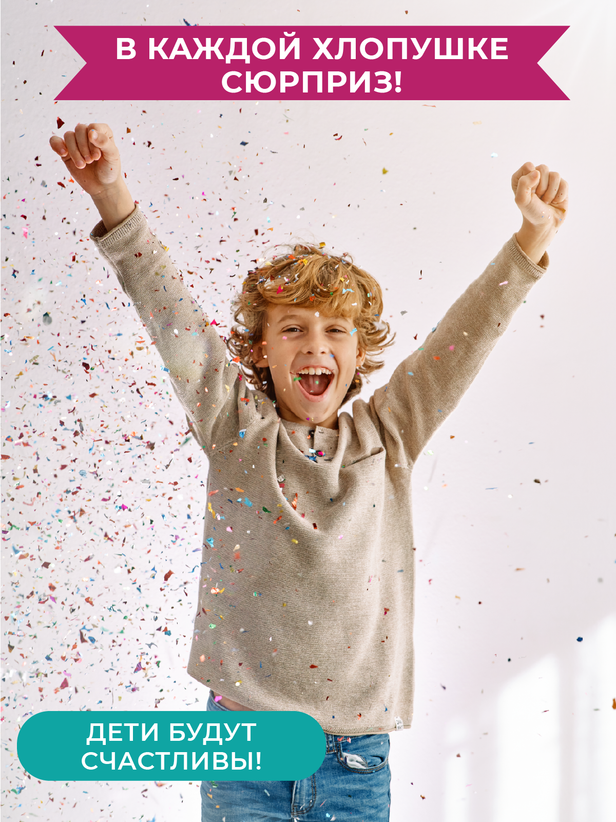 Хлопушки пружинные Блеск серпантин с разноцветной печатью / 16 см / 3 шт.