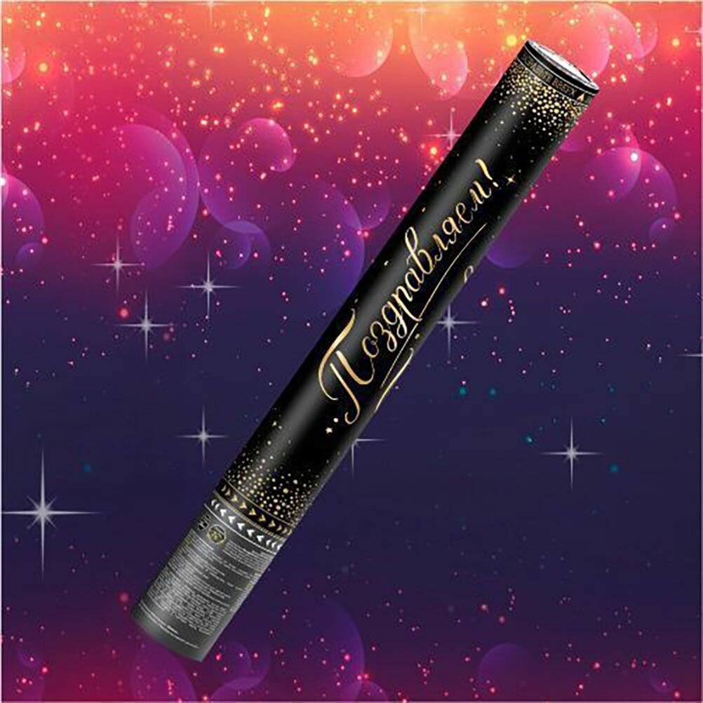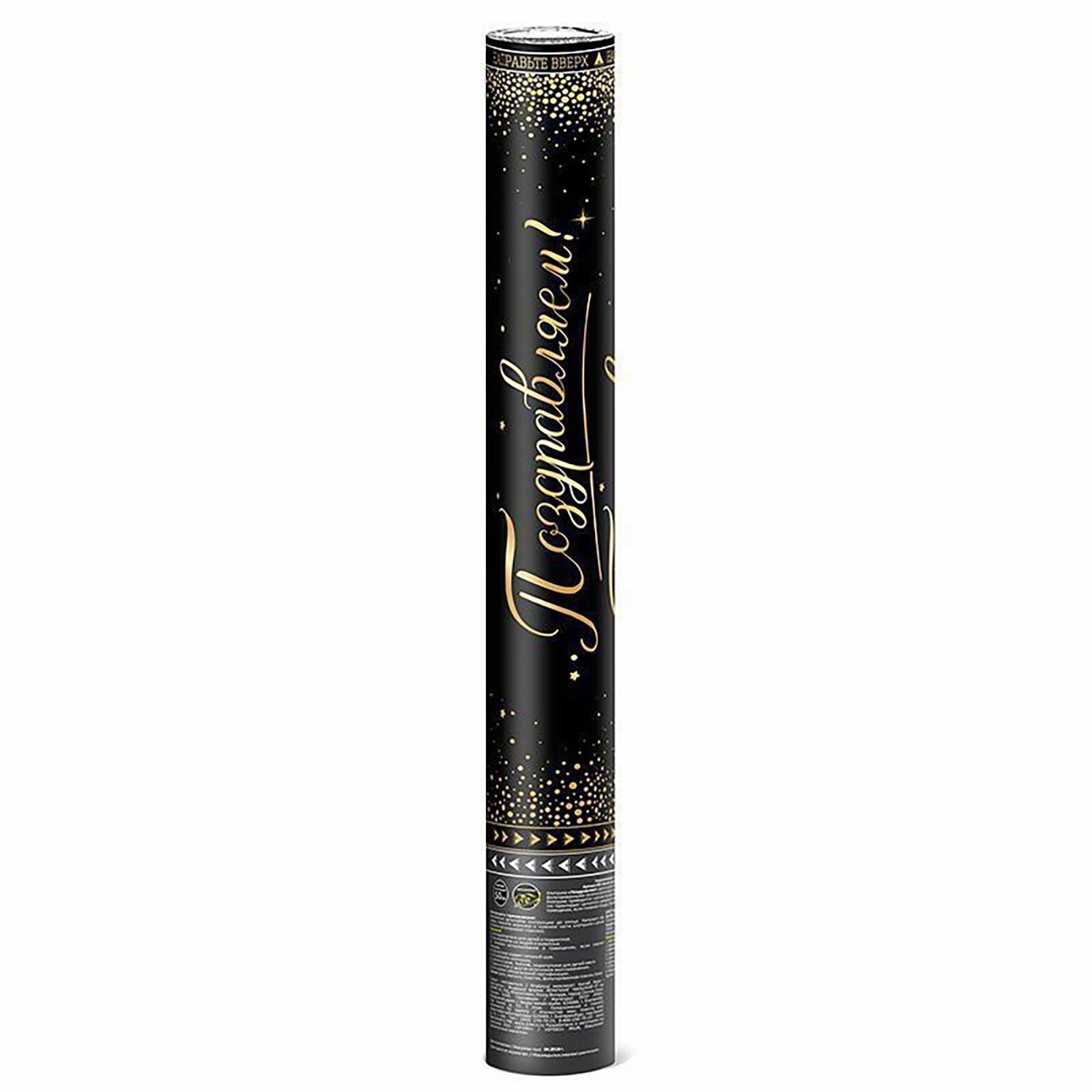 Купить Пневмохлопушка "Поздравляем!" Серпантин с золотой печатью (тиснение) / 50 см / 1 шт.