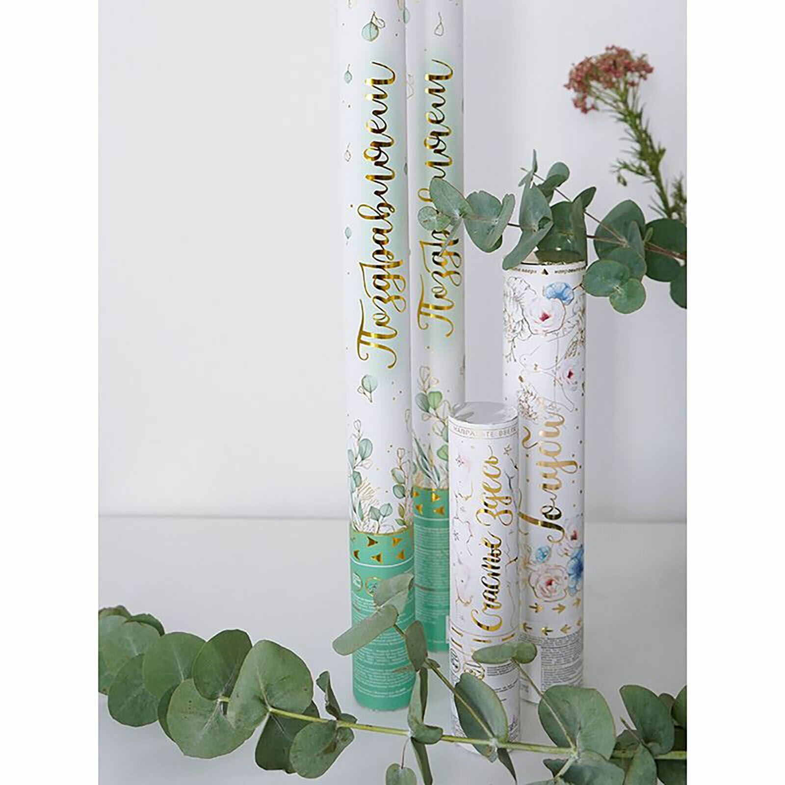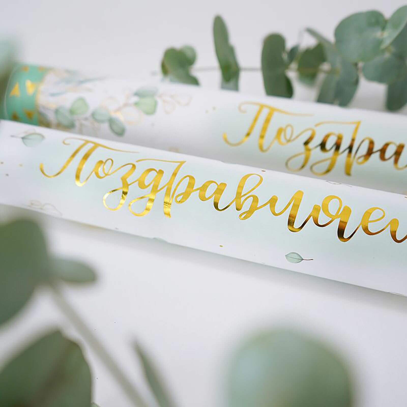 Пневмохлопушка "Поздравляем!" Серпантин с золотой печатью (тиснение) / 50 см / 1 шт.