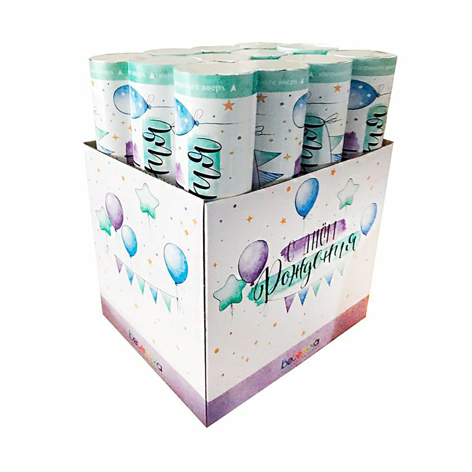 Купить Пневмохлопушка "С днем рождения!" Блеск серпантин / 30 см / 1 шт.