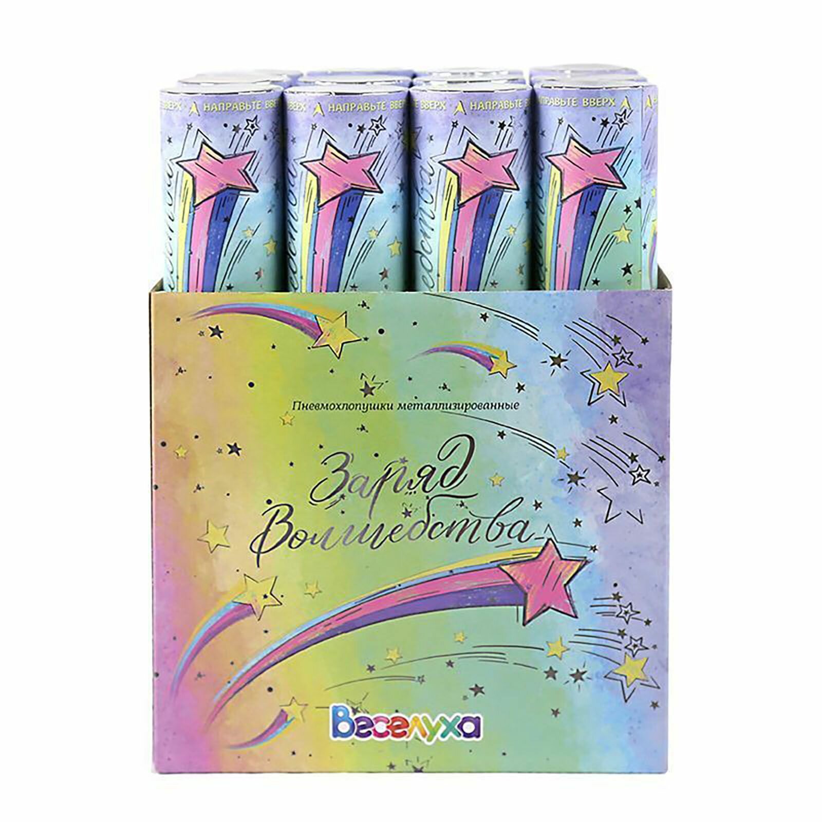 Купить Пневмохлопушка "Заряд волшебства!" Блеск с серебряной печатью / 30 см / 1 шт.