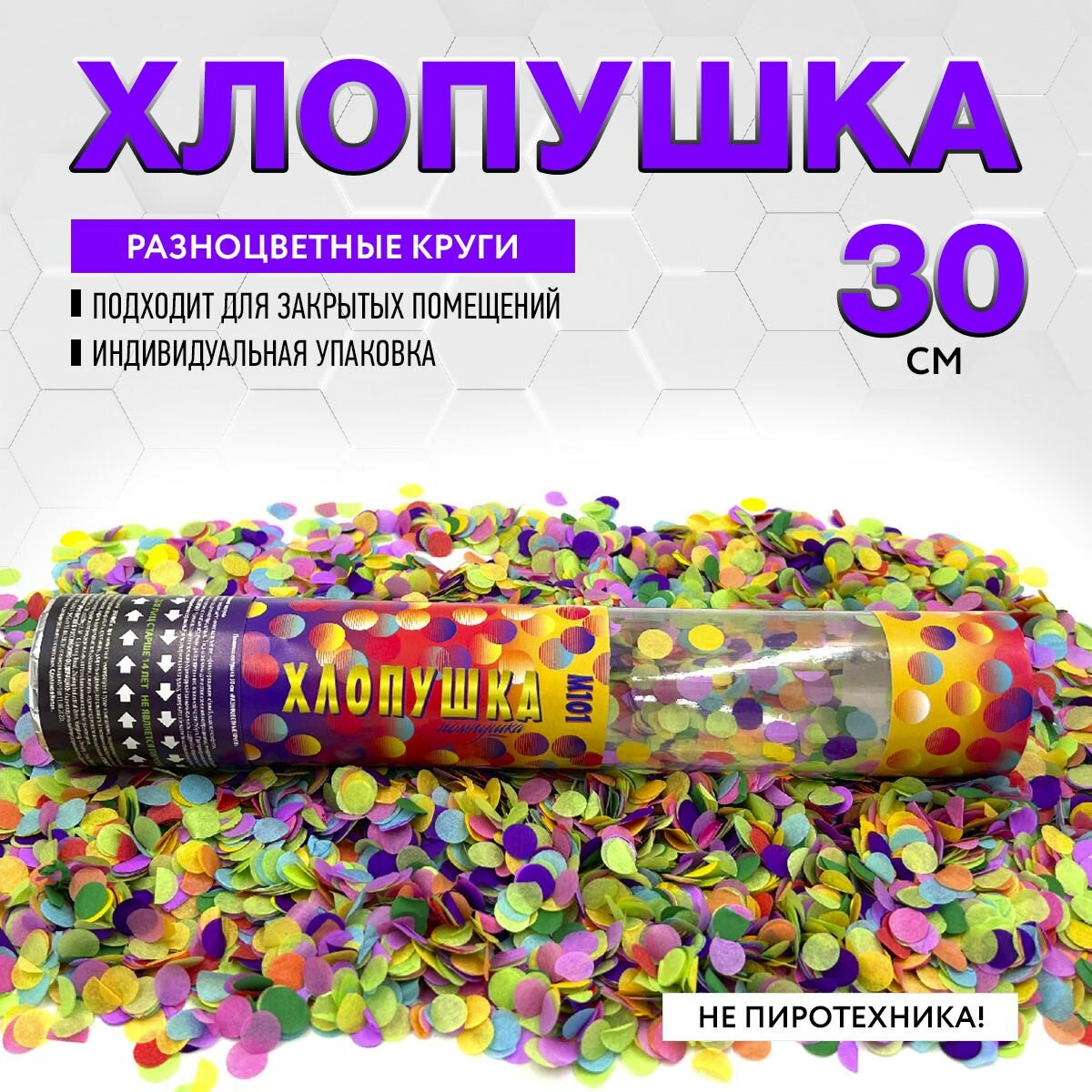 Купить Праздничная хлопушка 30 см с разноцветными бумажными конфетти 1 шт. / М101 марксан / хлопушка пневматическая
