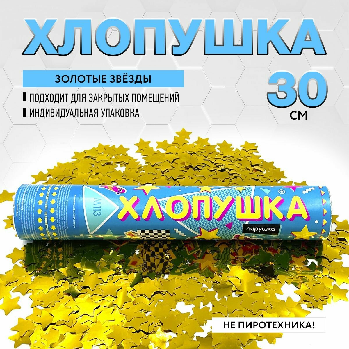 СохранитьПраздничная хлопушка 30 см золотые звёзды 2 см из фольги 1 шт. / М113 марксан / хлопушка пневматическая интересное: