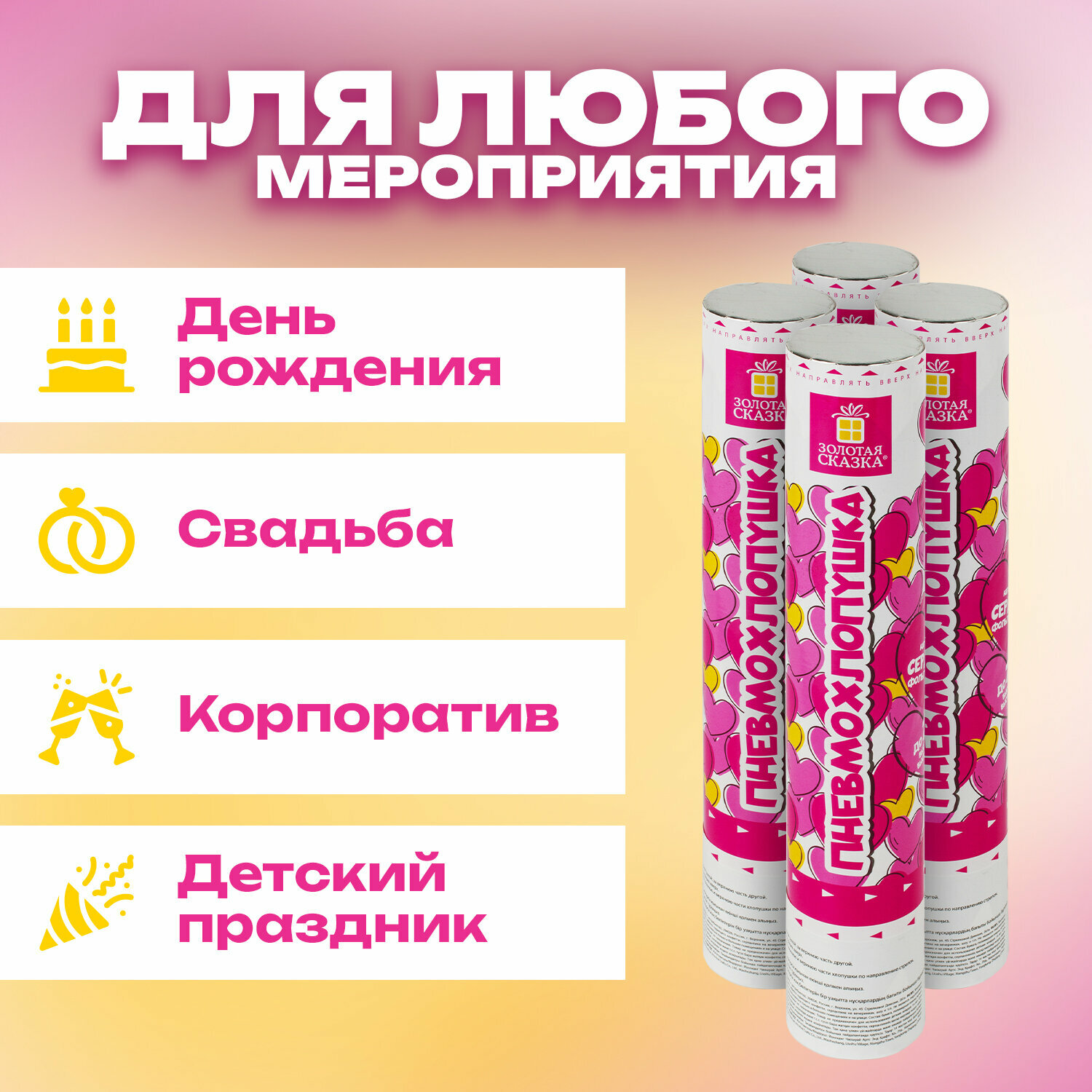 Хлопушка пневматическая 30 см "Сердечки", 3+1 шт. В подарок, фольга цвет красный, золотая сказка, 592082 интересное: