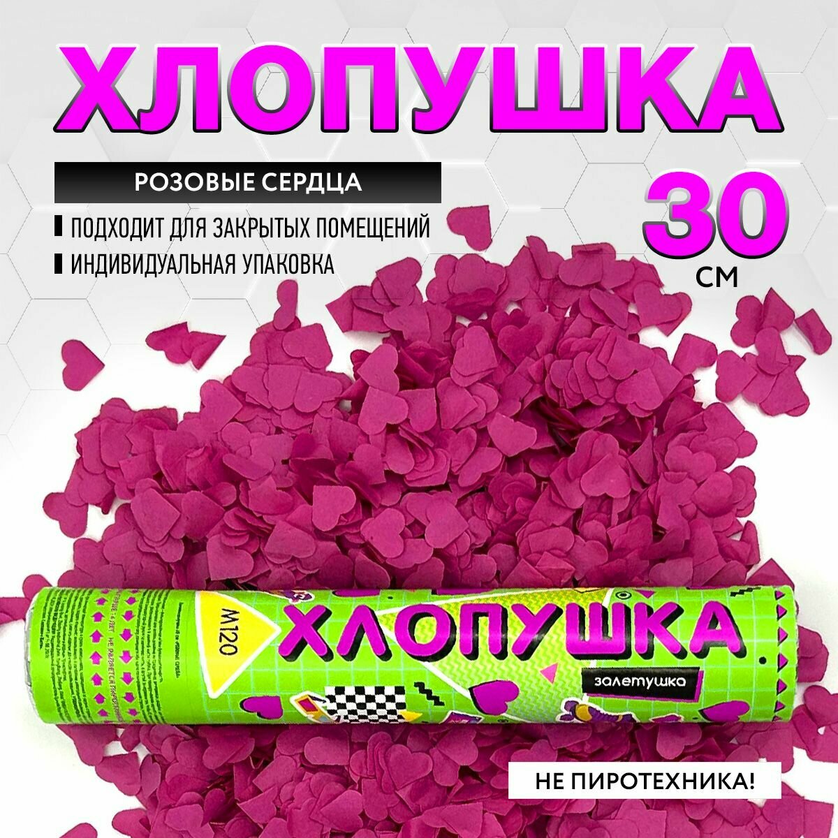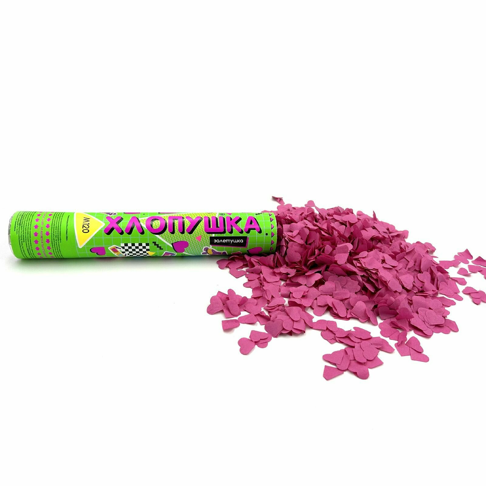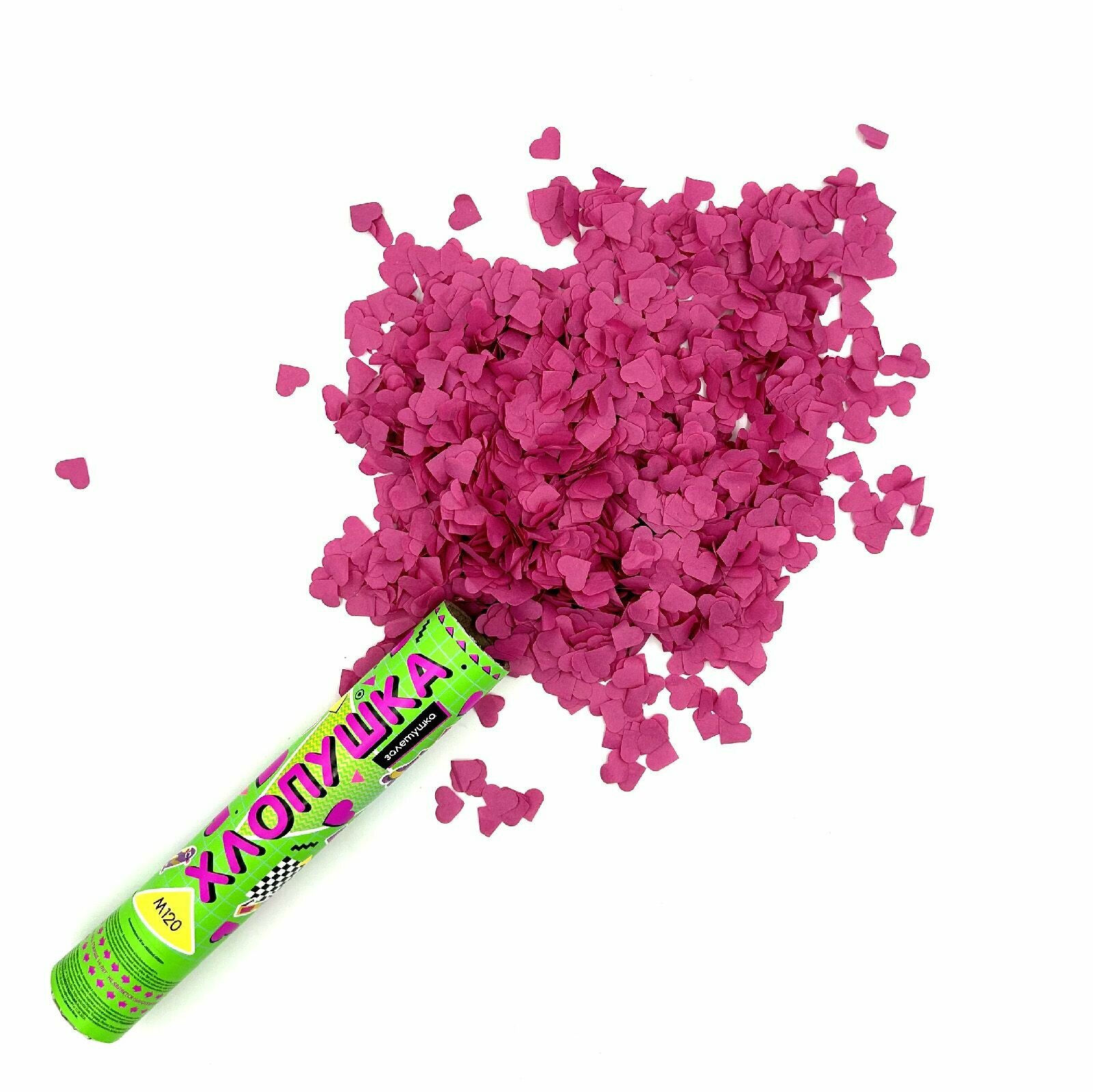Праздничная хлопушка 30 см розовые сердца 2см из бумаги1 шт. / М120 марксан / хлопушка пневматическая интересное: