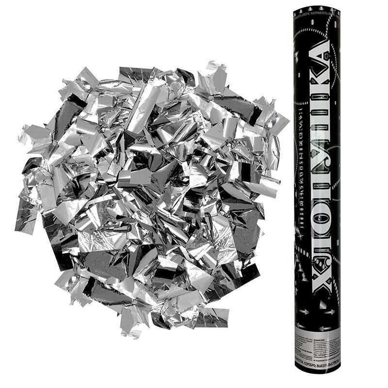 Купить Пневмохлопушка (16/40 см), Металлизированное конфетти, Серебро, 1 шт.