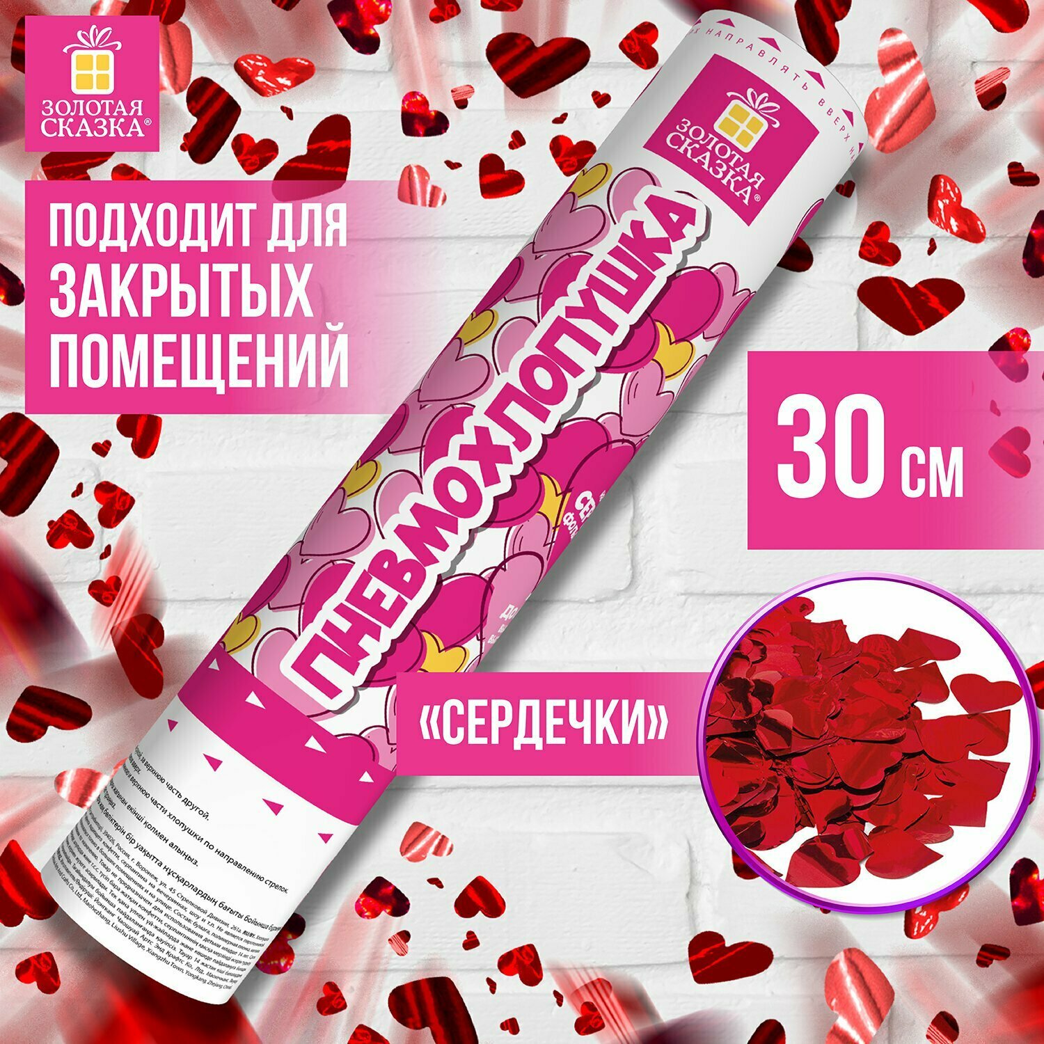 Хлопушка Золотая Сказка пневматическая "сердечки" 30 см, фольга, сердечки, красный, 591475 интересное: