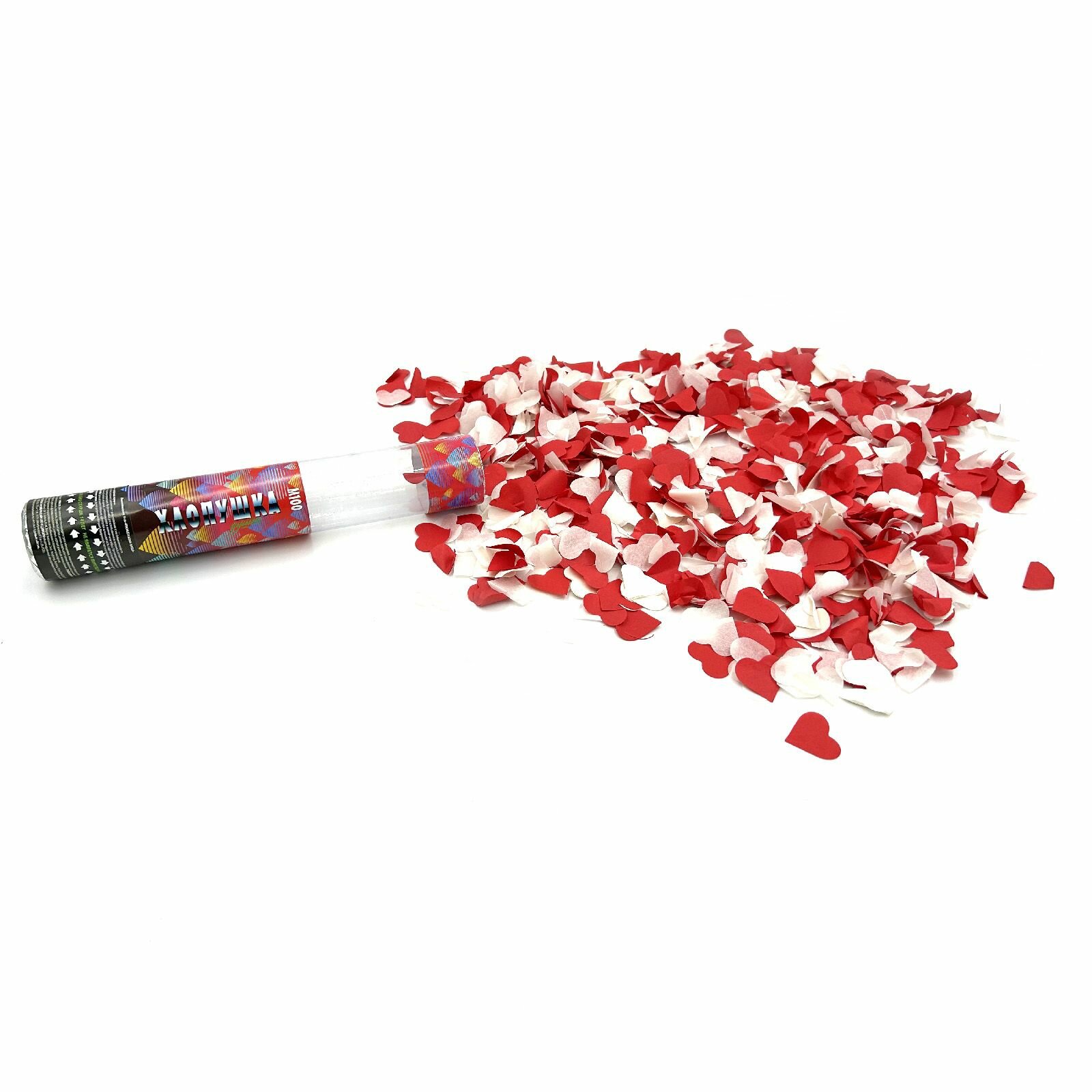 Праздничная хлопушка 30 см с 3см красными + 3см белыми сердцами из бумаги - 1 шт. / М100 марксан / хлопушка пневматическая интересное: