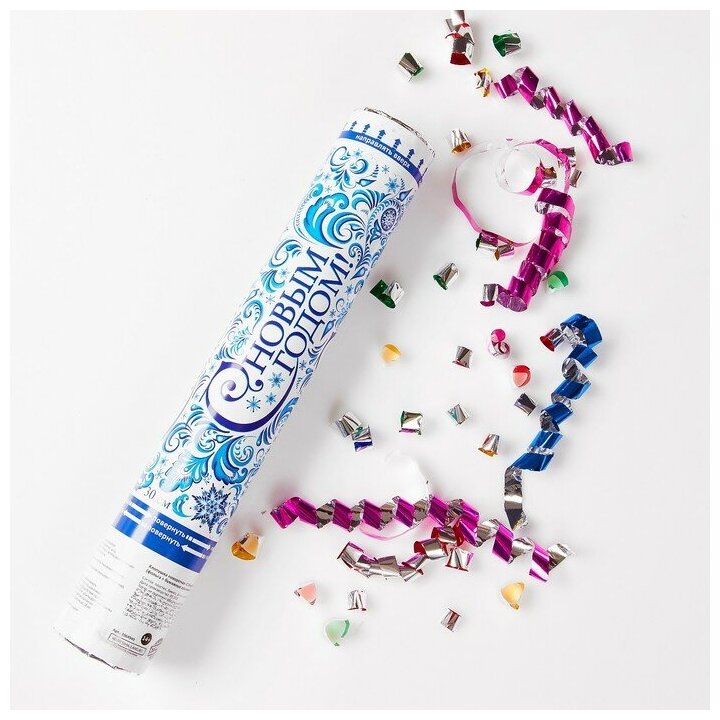 Хлопушка пневматическая поворотная "С Новым годом!", 30 см фольга, бумажные вложения с пожеланиями интересное: